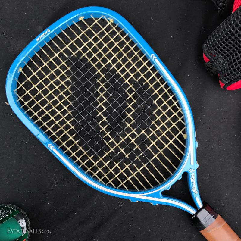 Four racquetball rackets, new glove (size medium), ProPenn Balls / BallSaver and a large gym bag to hold all of your gear! Great time to try a new sport! Shipping available or local pick up in Asheville, NC.