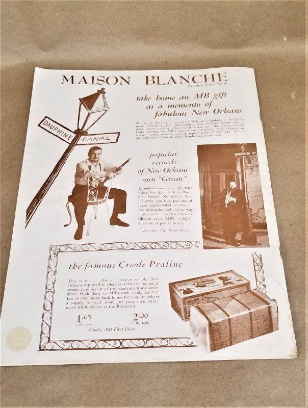 Here's a blast from the past - April 1963 issue of the Roosevelt Review, featuring a photo of Lee Remick on the cover. Back in the day, all the top acts played the Blue Room. Good condition - full of vintage New Orleans ads and photos.