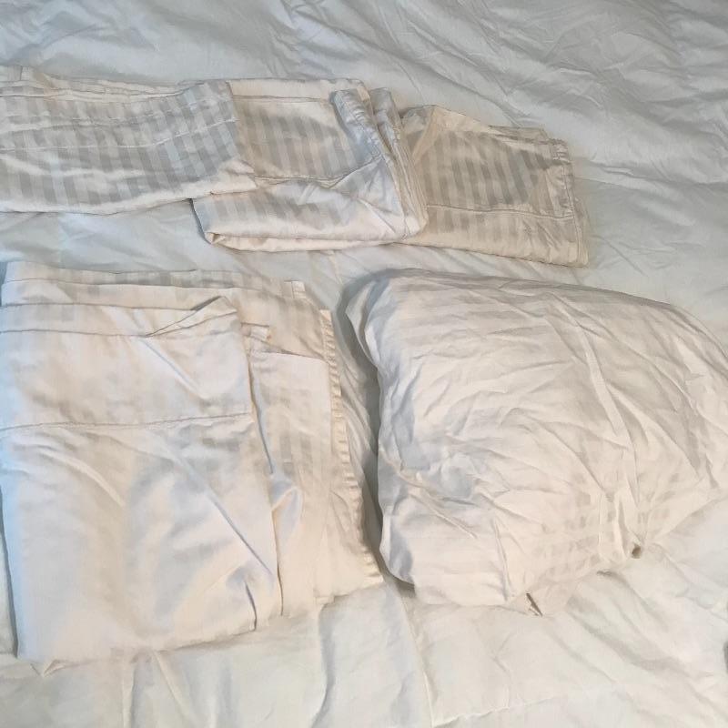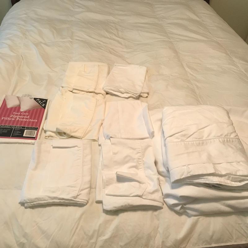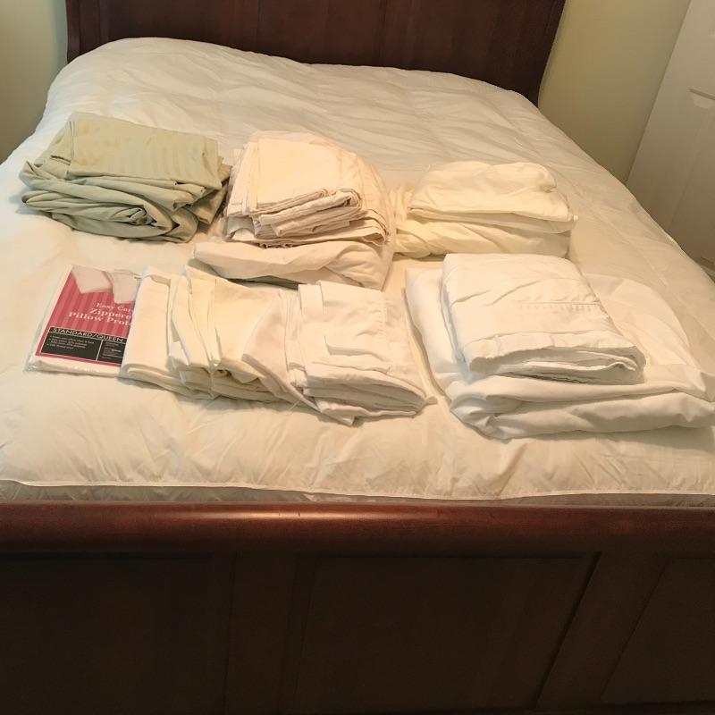 Woolrich twin size duvet in great condition with four sheet sets. Most sheets appear to be full size and come with four complementing pillow cases. A new in packaging 2pack white queen pillow cases are also included. All items appear to be in nice condition. Pieces are photographed on a full size mattress, the duvet has no specific size noted, it its a few inches wider than the mattress top. See photos for more material information. Local pick up only.