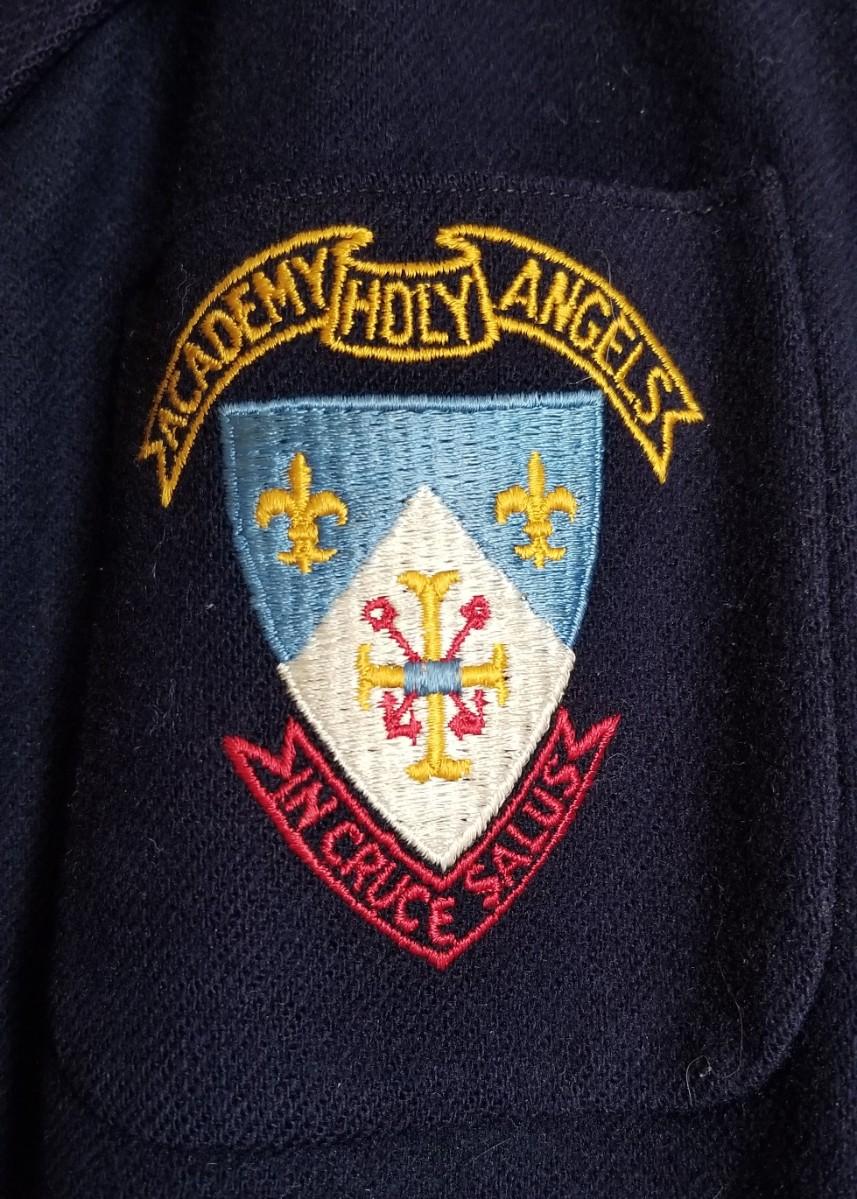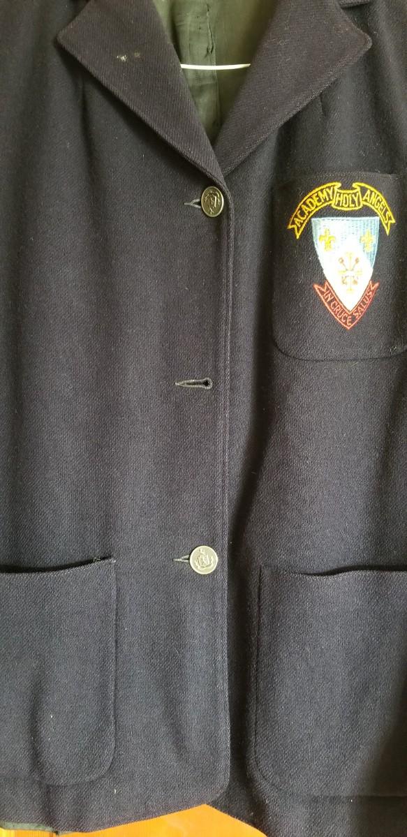 Blast from the past - vintage Academy of the Holy Angels blazer (school sadly now defunct). Missing one button. Obviously it has been worn - lining is ok. No label, but it looks to be on the smaller side (perhaps 8th grade girl). Pocket patch (embroidery) looks good.