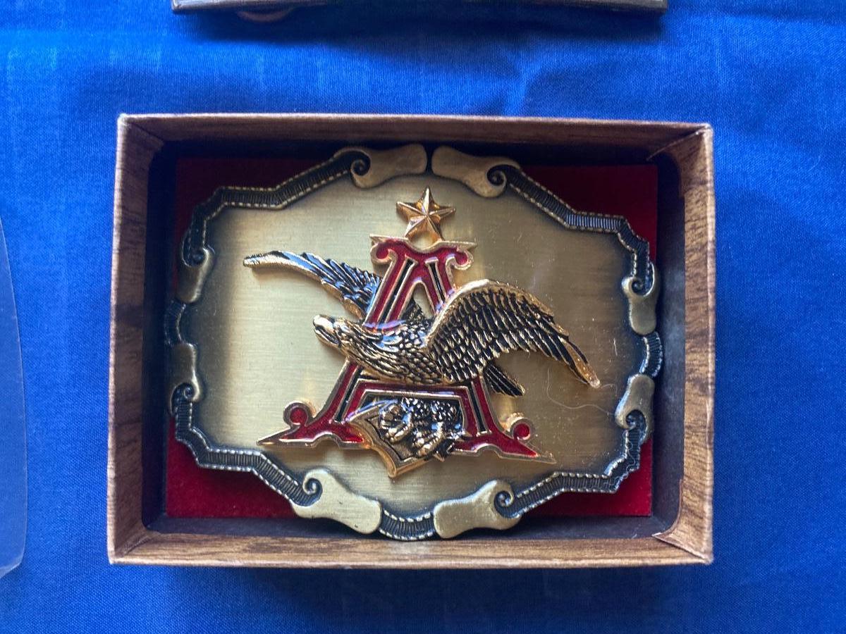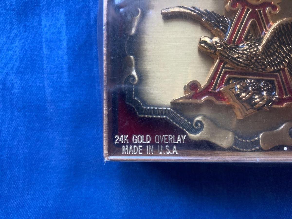 THE COLORED BUCKLE IS 24k GOLD OVERLAY AND IN ITS ORIGINAL BOX.