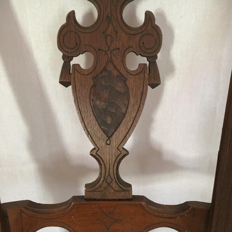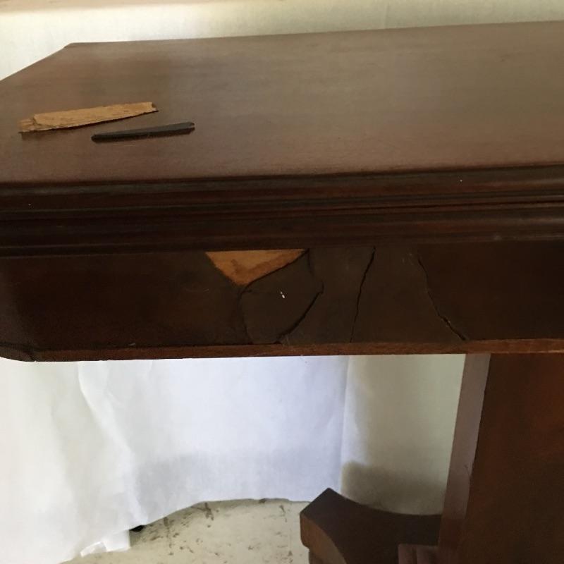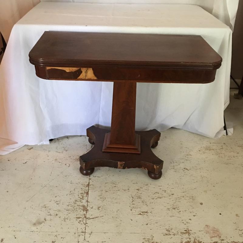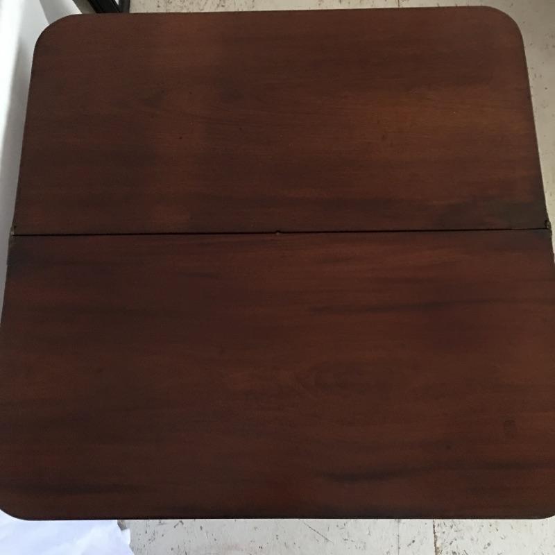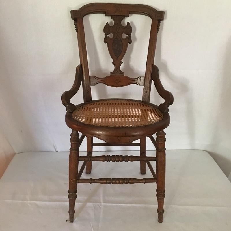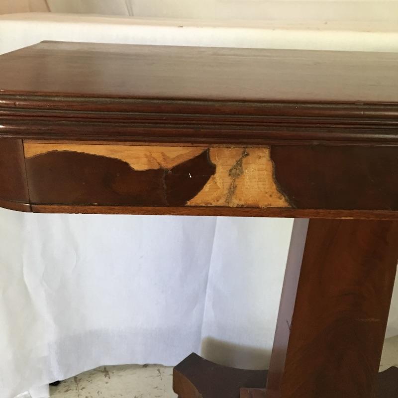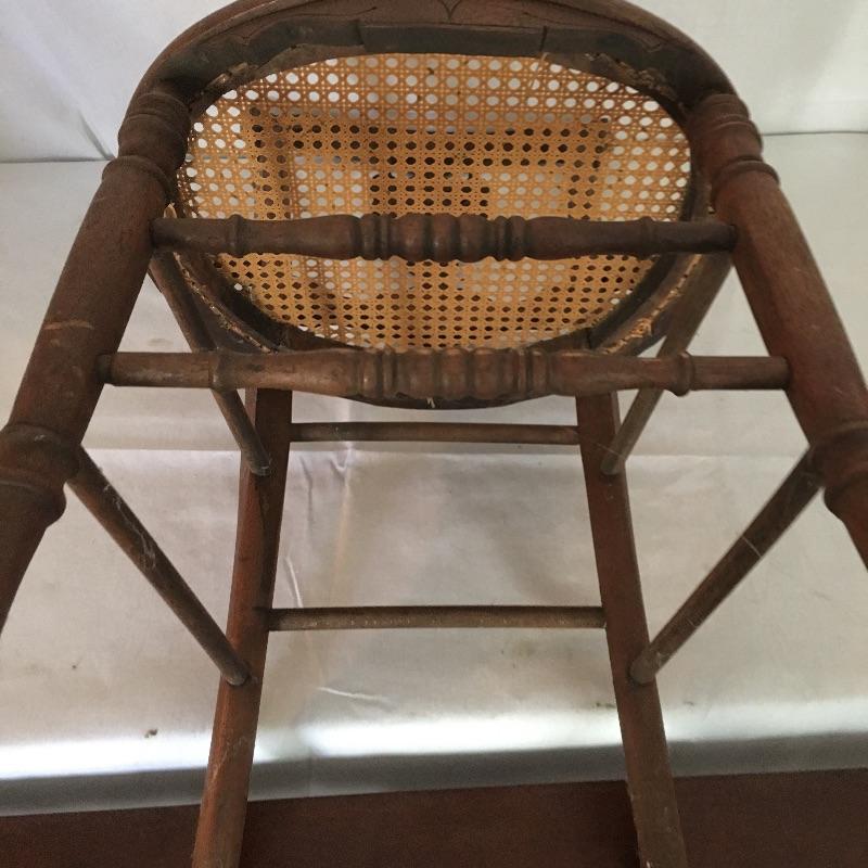 Enchanting games table and cane bottom chair. Table unfolds to double the size and has storage under top. Great craftsmanship on this pair. Table unfolded measures 33.5” x 33.5” x 28”. Veneer is broken on front - see pictures.
