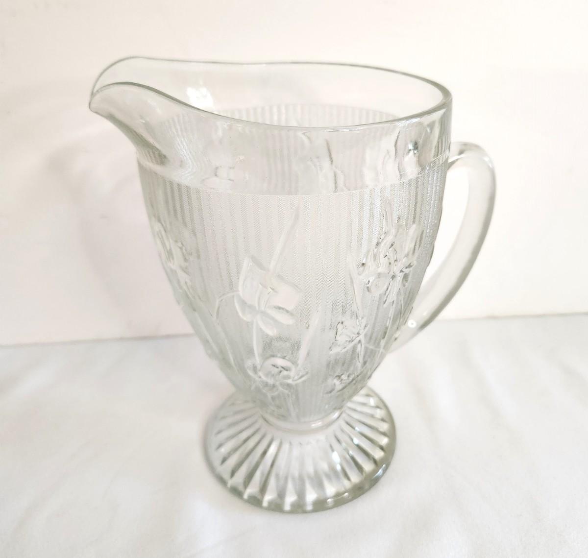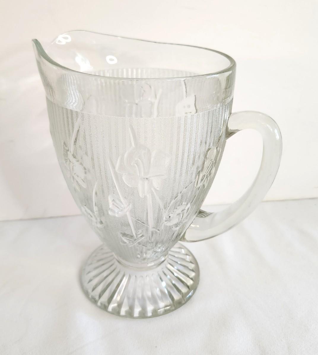 Lot #23 Vintage Iris and Herringbone Pressed Glass Pitcher