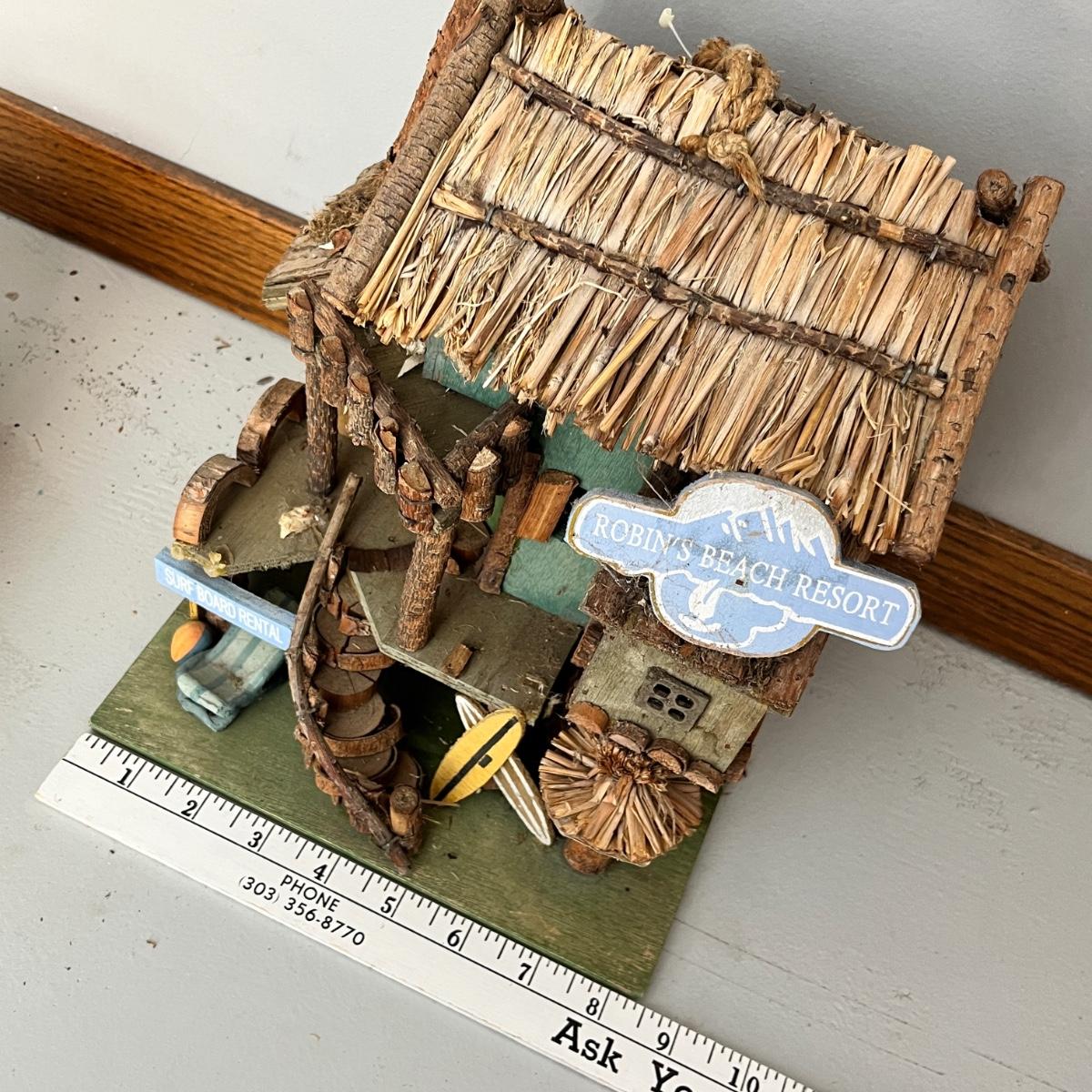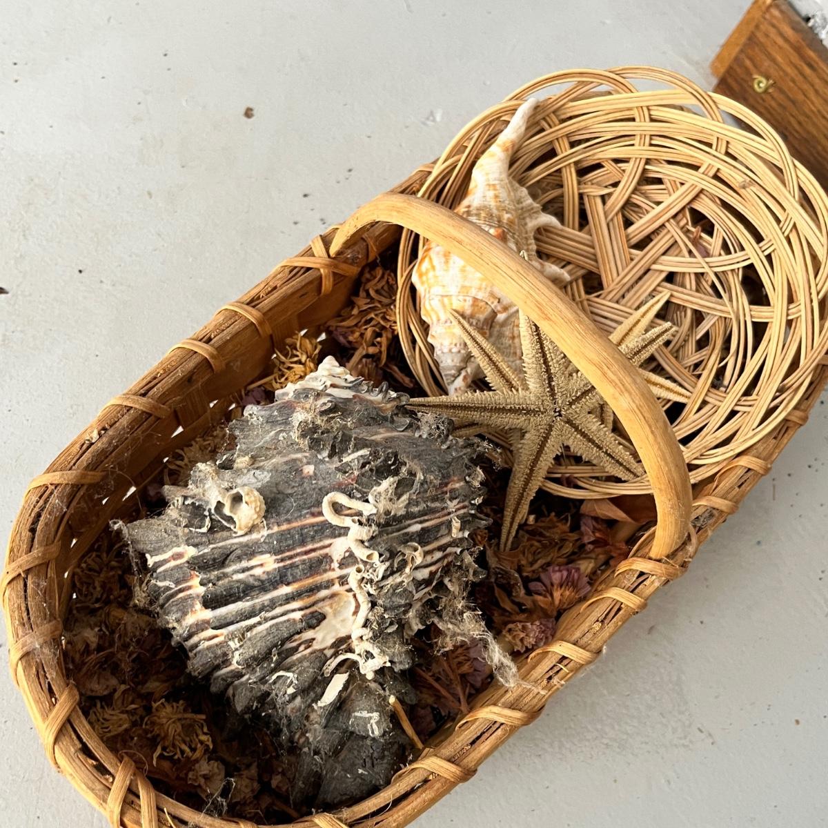 Lot 230 Beachhouse birdhouse and basket of seashells