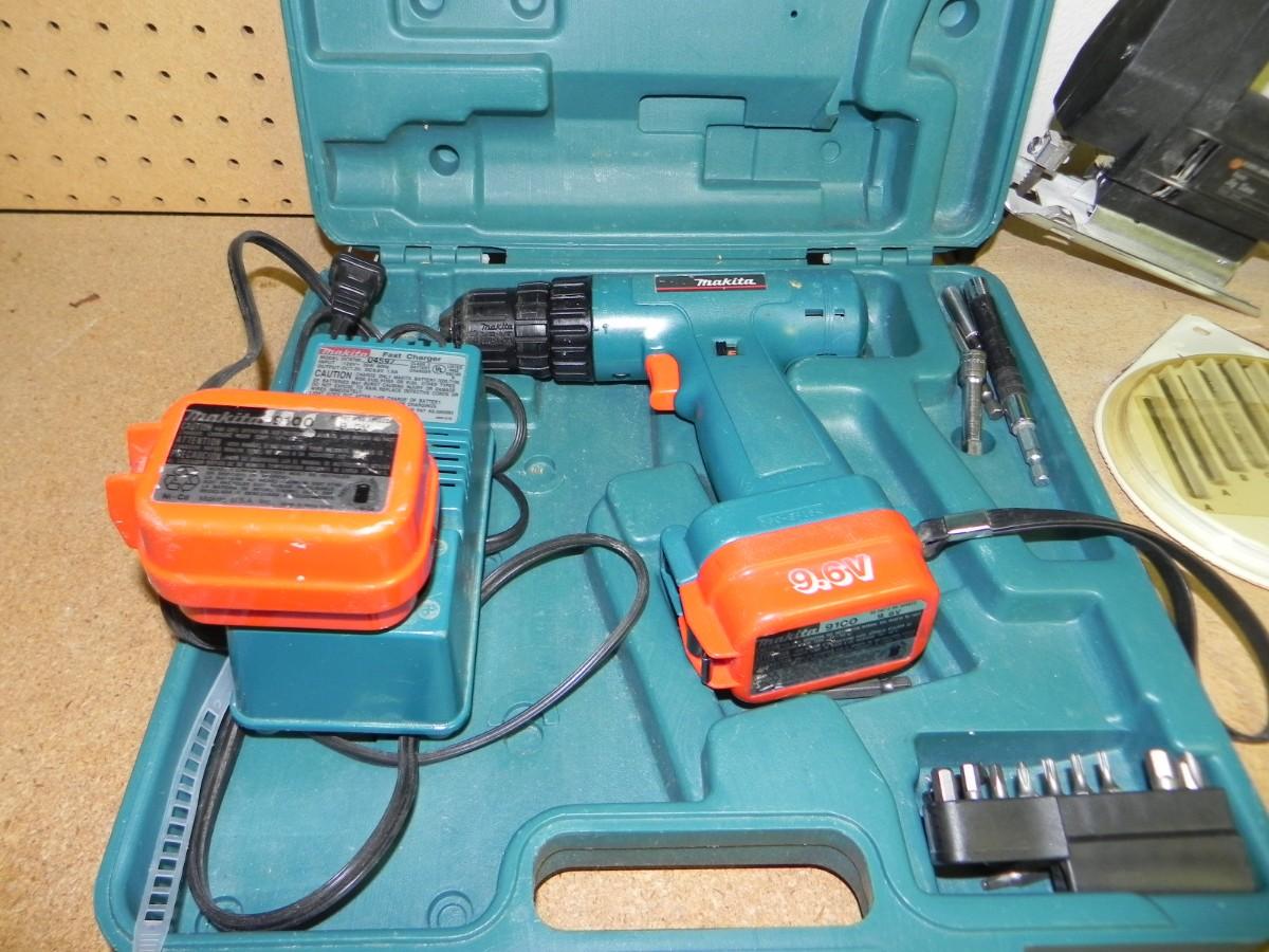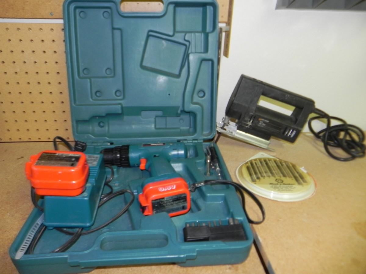 MAKITA CORDLESS DRILL IN CASE WITH CHARGER AND EXTRA BATTERY & B&D JIGSAW WITH BLADES