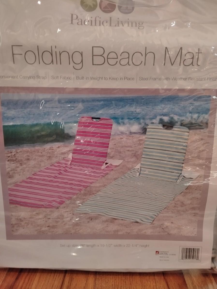 TWO NEW FOLDING BEACH MATS WITH ADJUSTABLE BACKS. 76" X 22 1/4"X 19.5"