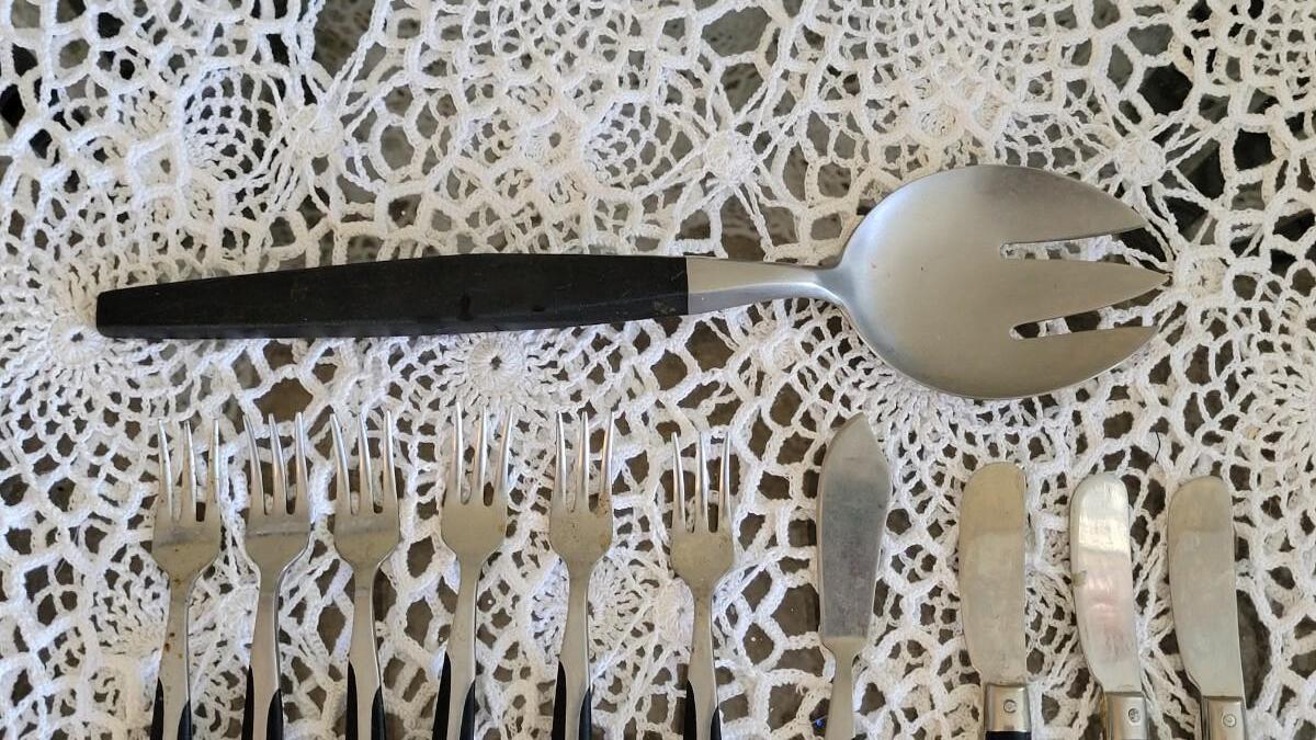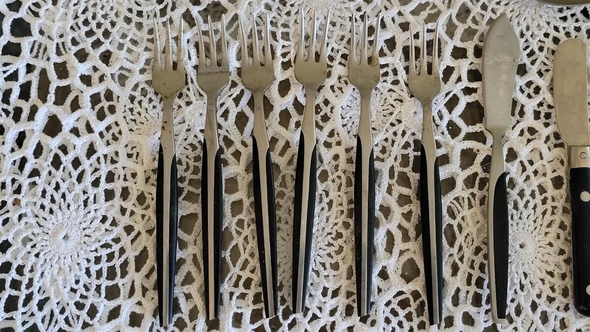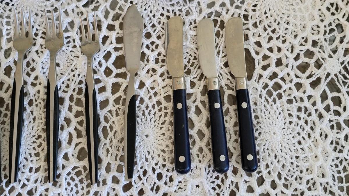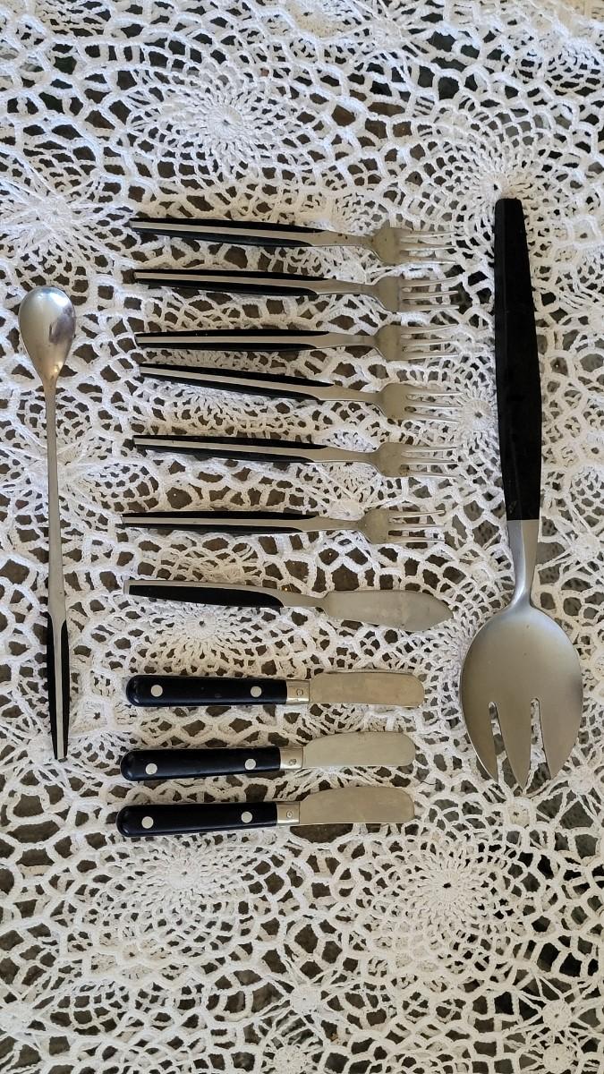 Lot 230: Vintage Mid Century Modern Black & Stainless Flatware