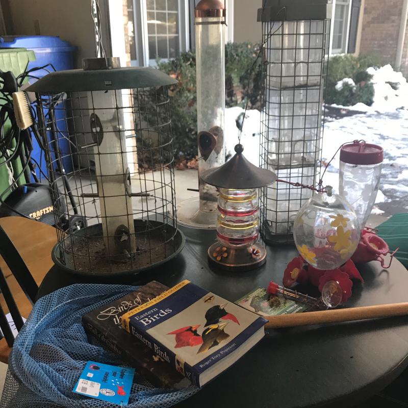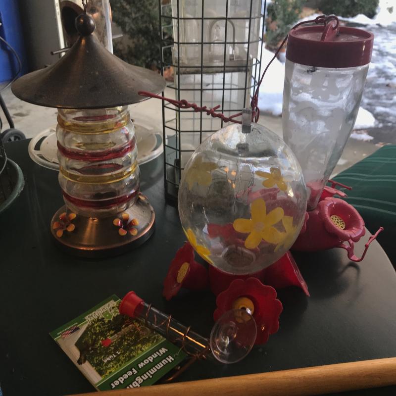 6 bird feeders. Several humming bird feeders in lot. Includes two birding books and butterfly net. No shipping. Local pick up only in Asheville, NC.