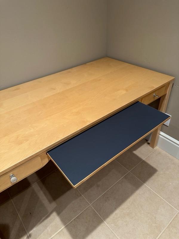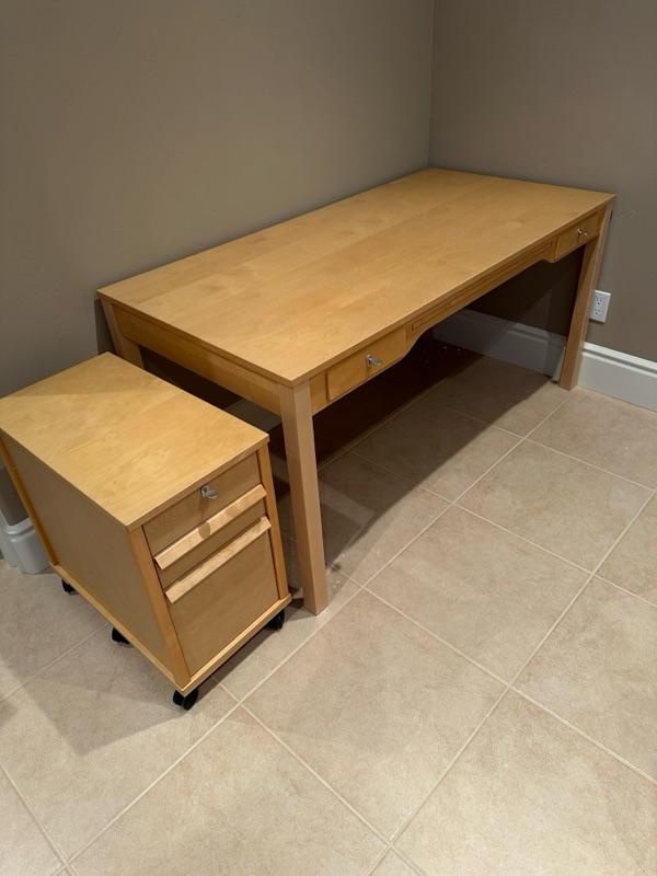 IKEA desk with matching file cabinet desk is 4’11” long and 2’6” deep cabinet is 2’ x 1’ 2 inches