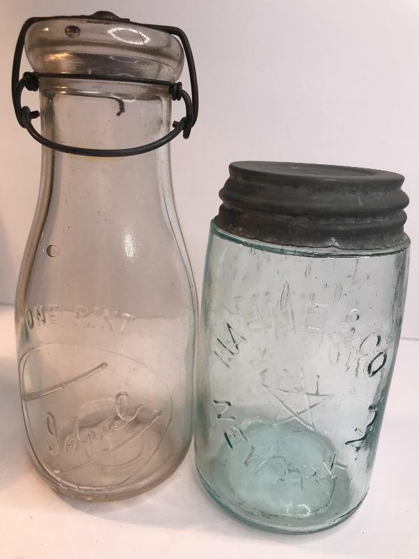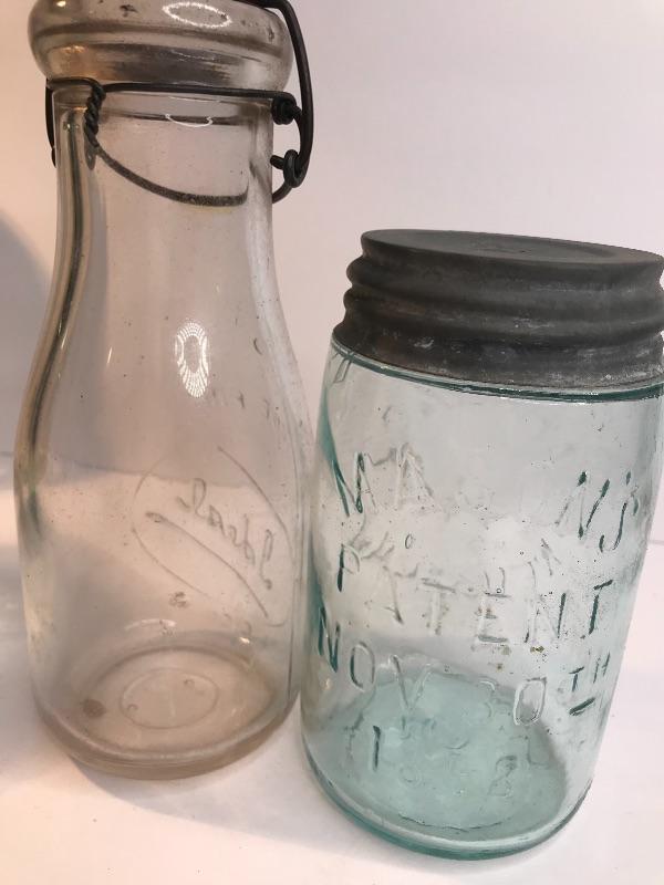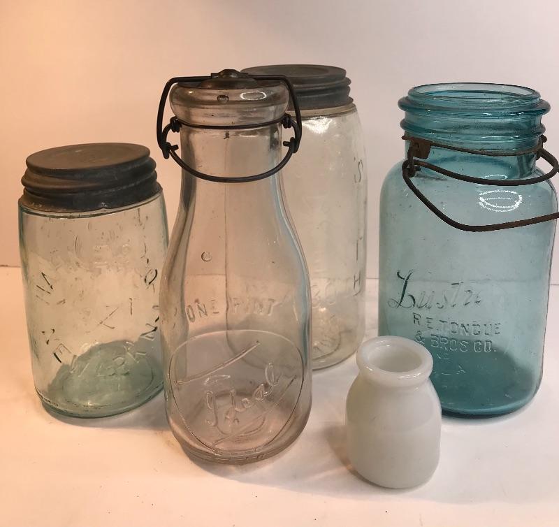 Lot 230: Antique Mason Jars and Dairy Bottle