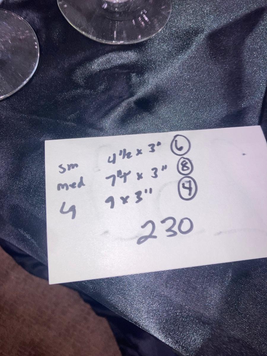 ALL GLASSES ARE 3” ACROSS THE TOP AND STANDING AT HEIGHTS