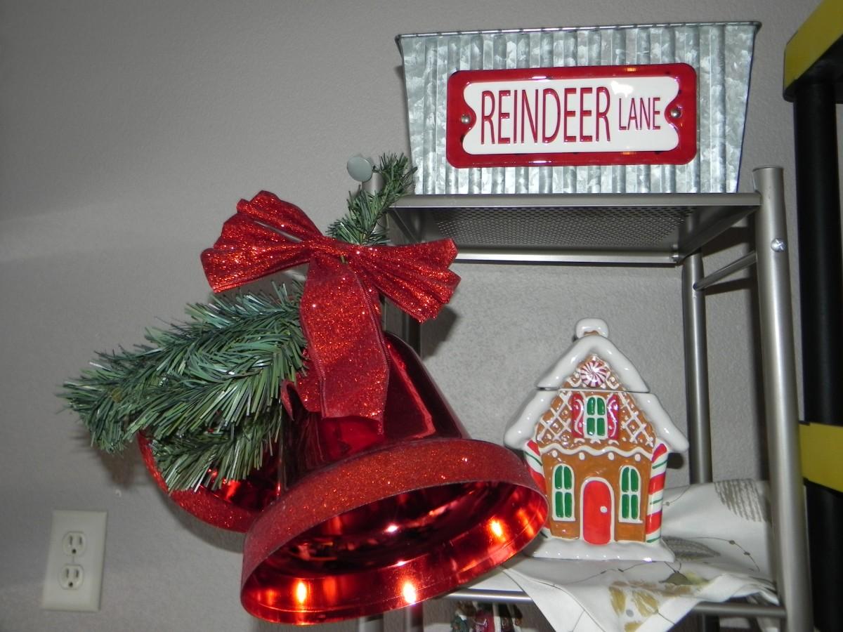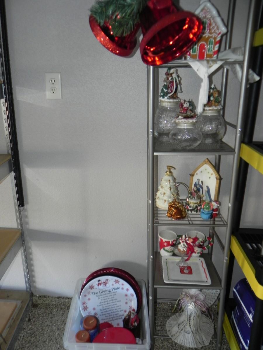 LOT 230 NARROW METAL SHELF FULL OF CHRISTMAS ITEMS