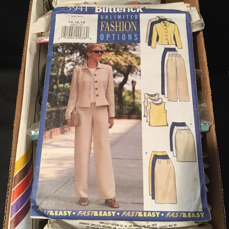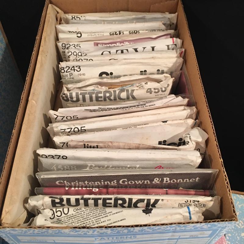 Plethora of patterns includes seven boxes of patterns from brands Simplicity, Butterick, Vogue, Quick Sew, McCalls and more. You should have more than enough patterns to keep you busy for the foreseeable future.