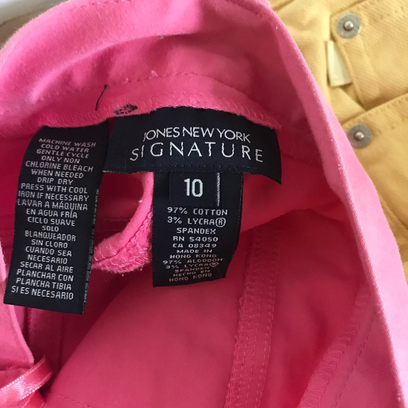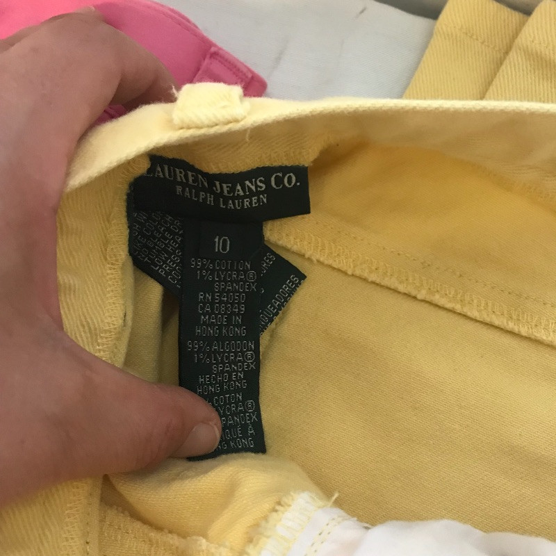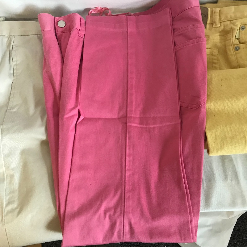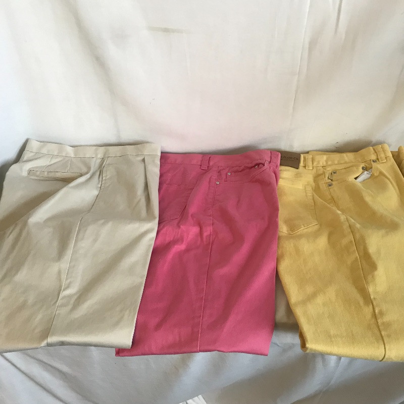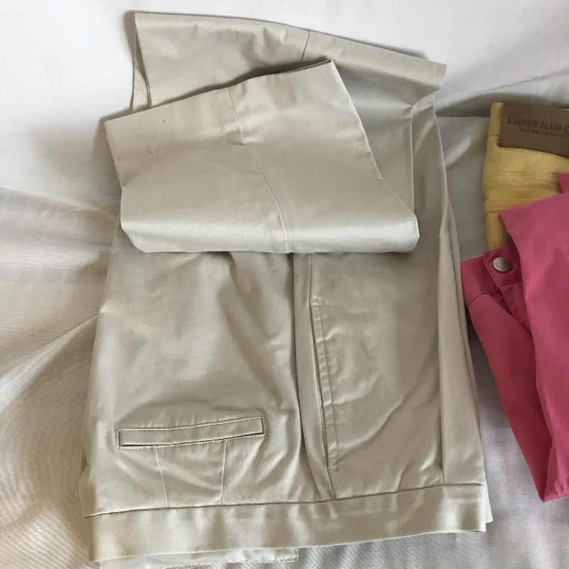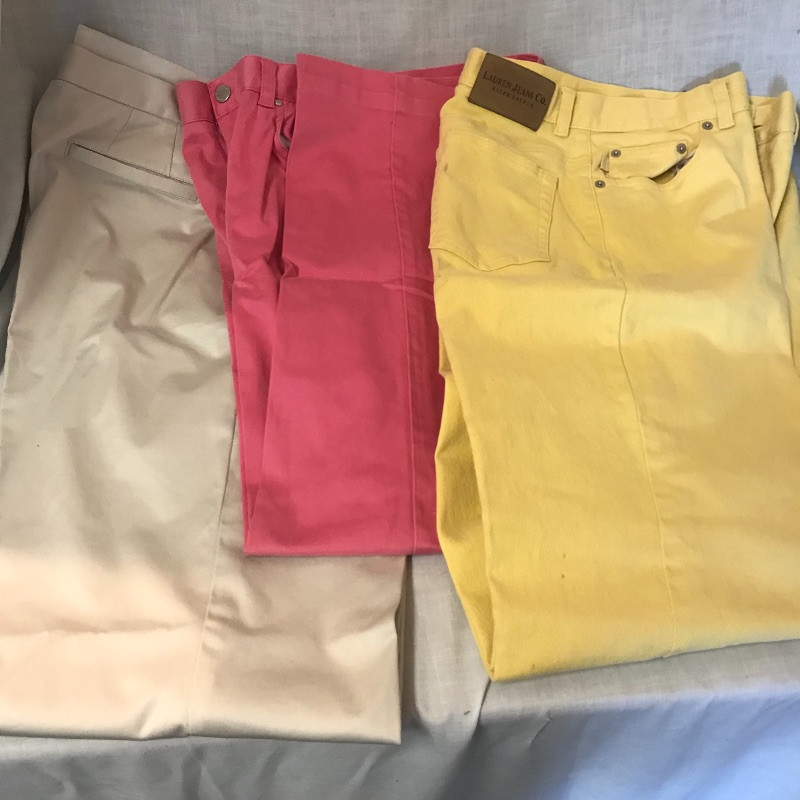 Lovely all weather slacks in a collection of size 10. The yellow Ralph Lauren pants have a couple spots noted in photos, it is unclear if they will be removed by washing, see images.