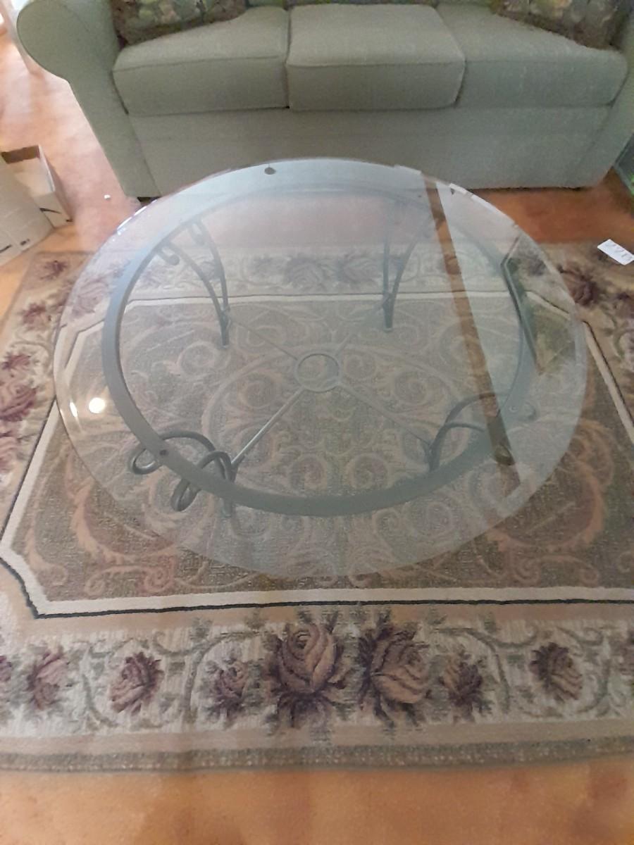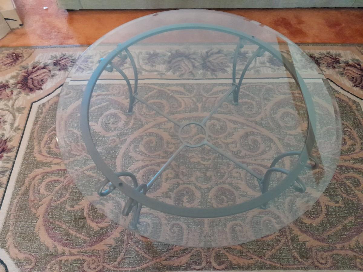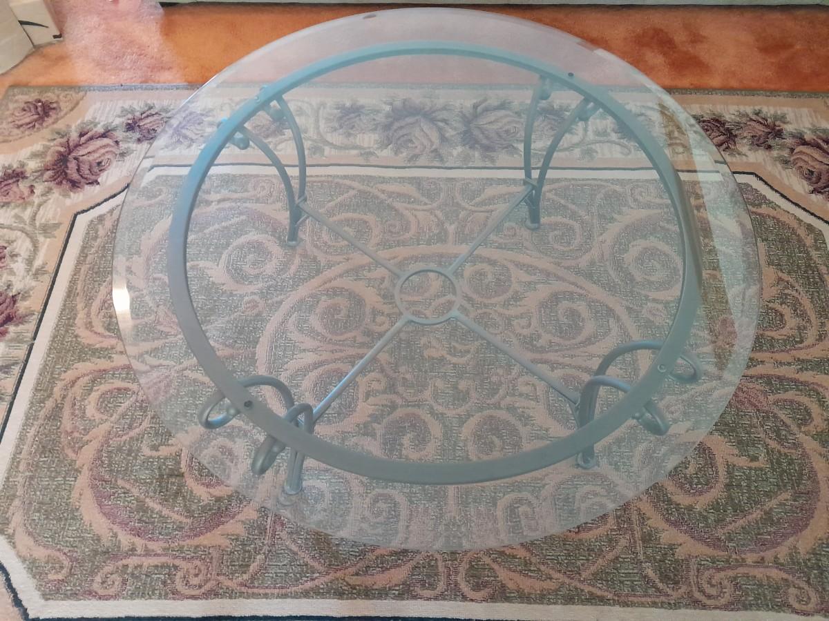 ROUND METAL FRAMED GLASS TABLE 17" X 38"