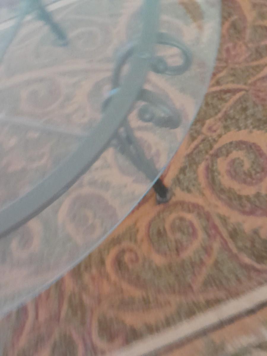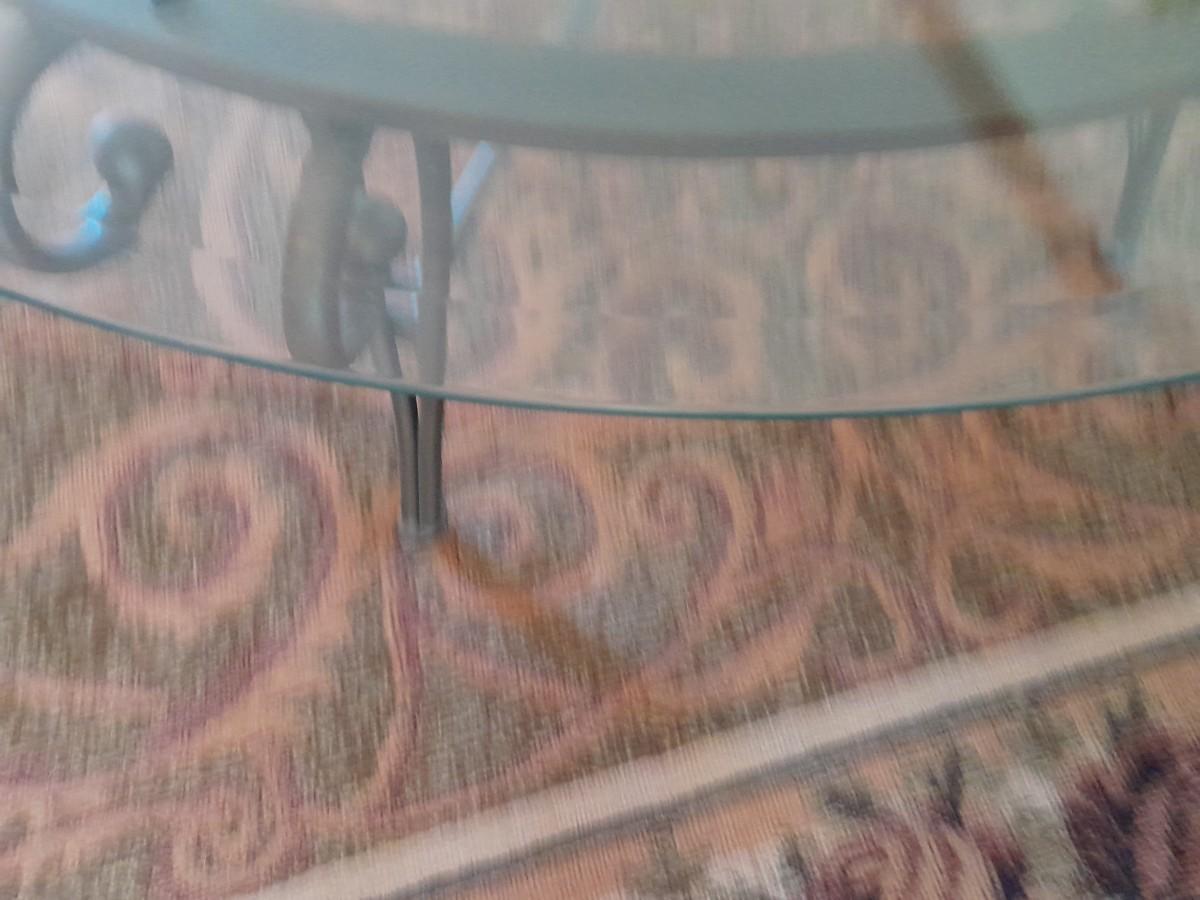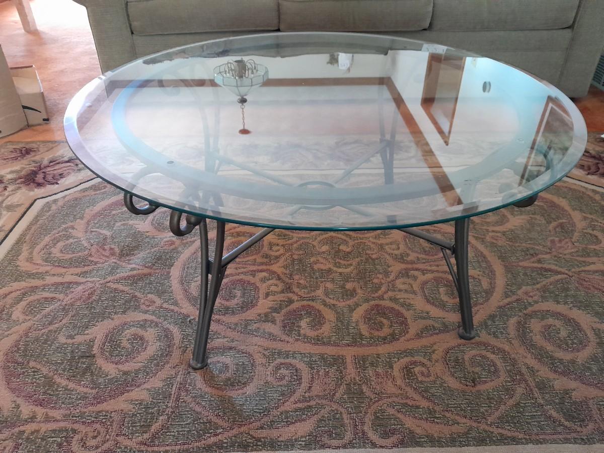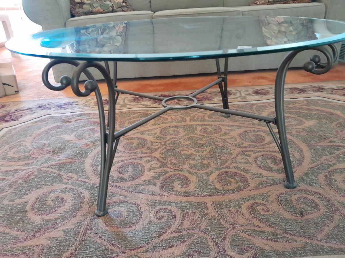 ROUND METAL FRAMED GLASS TABLE 17" X 38"