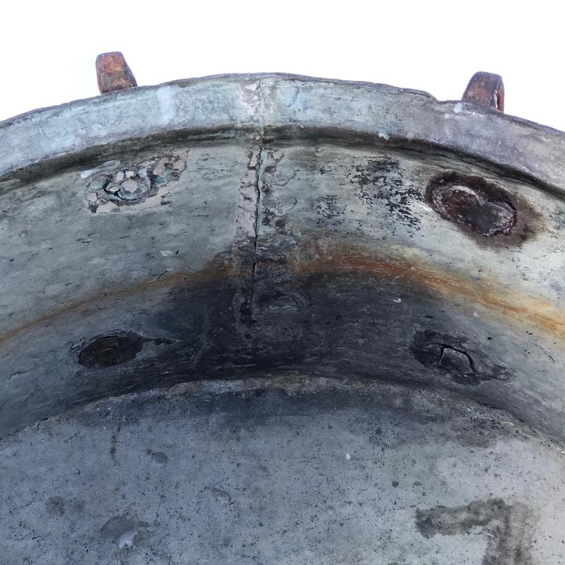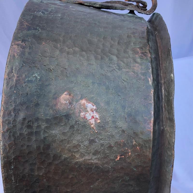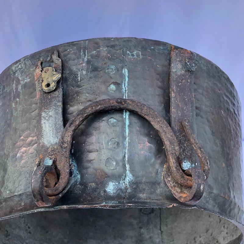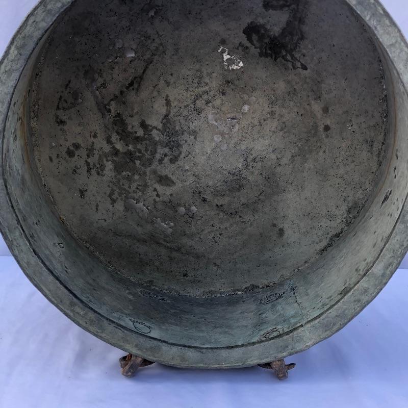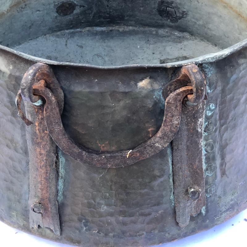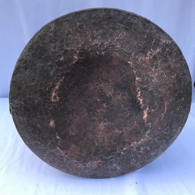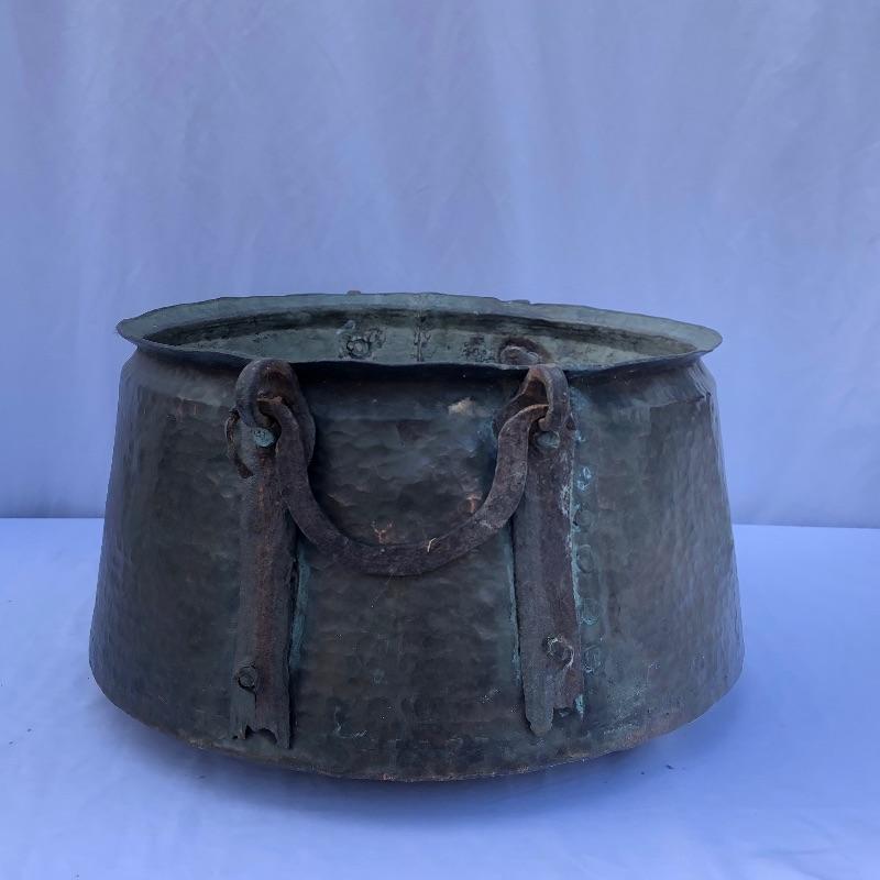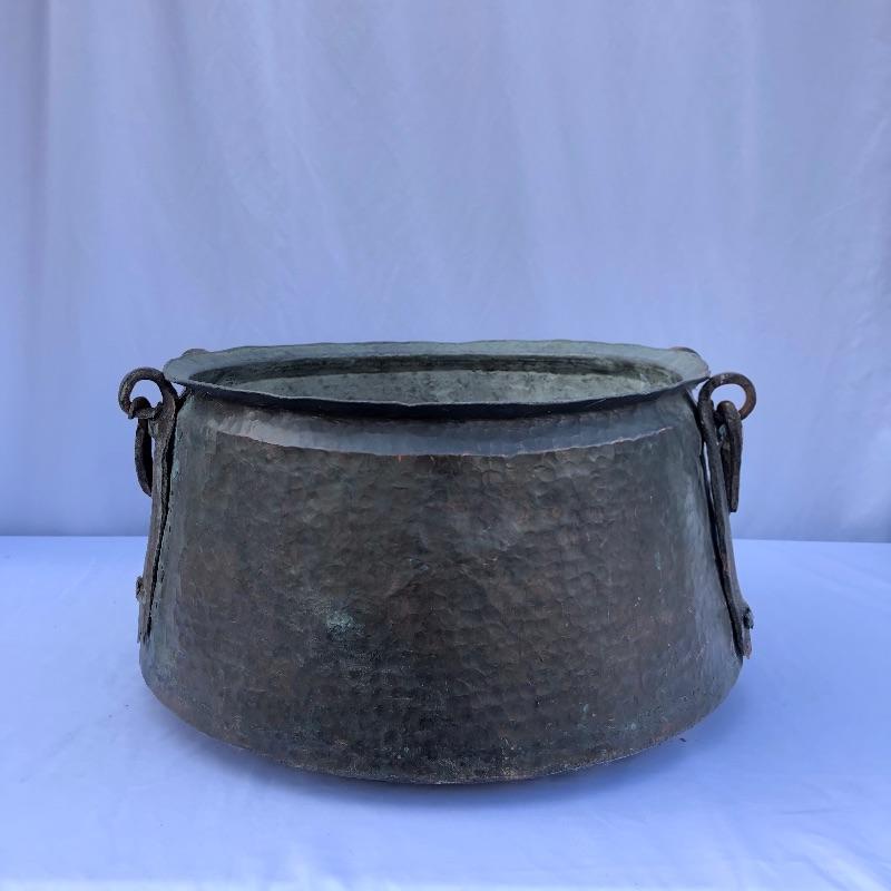 Wow! Great large heavy metal cauldron! It's made of heavy metal with copper undertones.