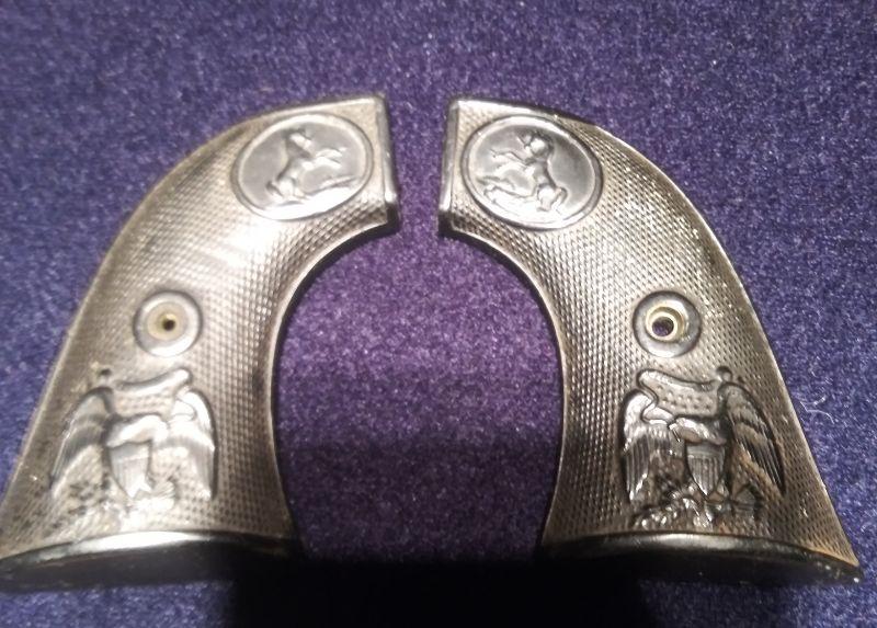 THE 2 PIECE GRIP IS A HARD PLASTIC AND IS SIGNED