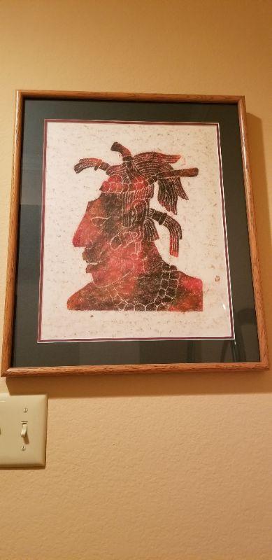 LOT #231: Mayan Figure Framed Art #3
