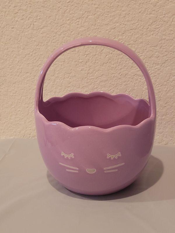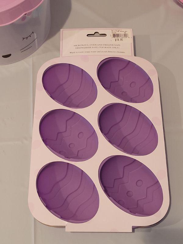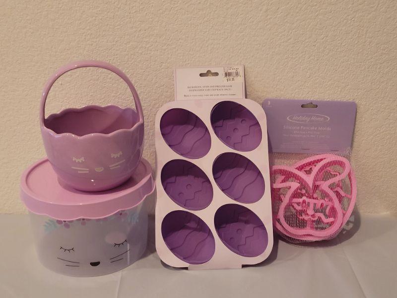 Lot 231: New Silicone Easter Pancake Molds, Easter Egg Silicone Mold, Easter Treats Container and Ceramic Easter Candy Basket