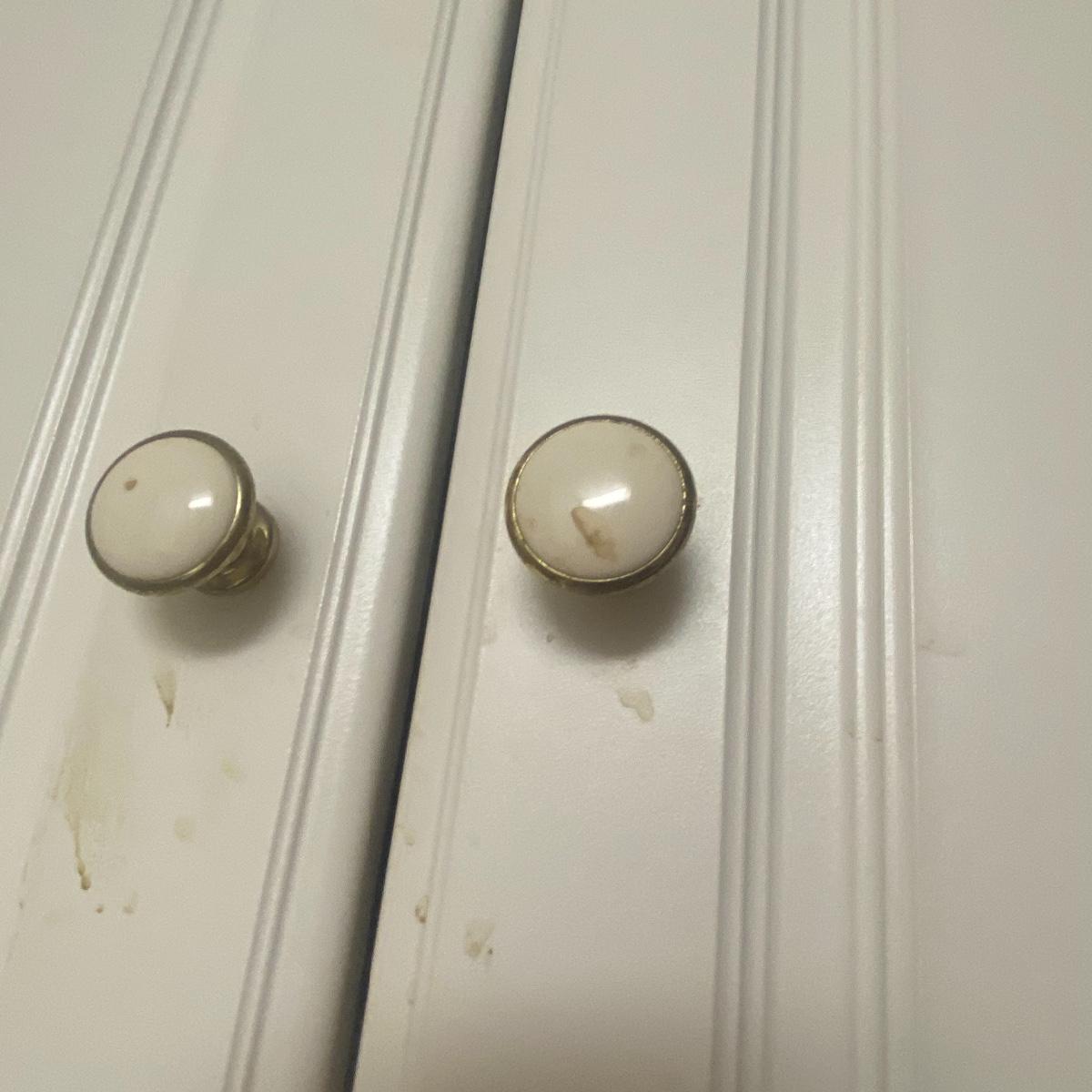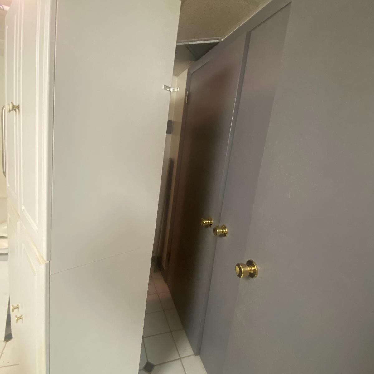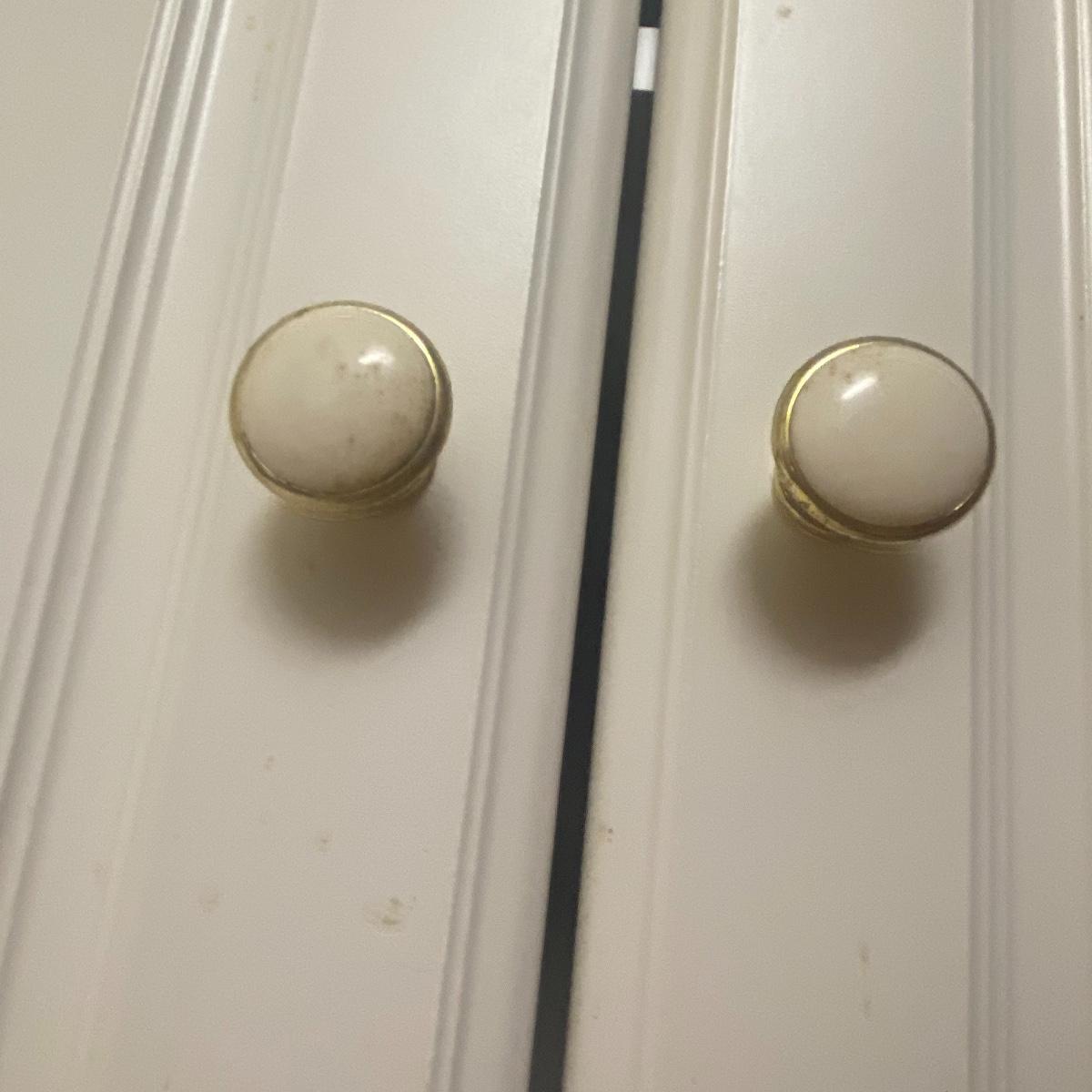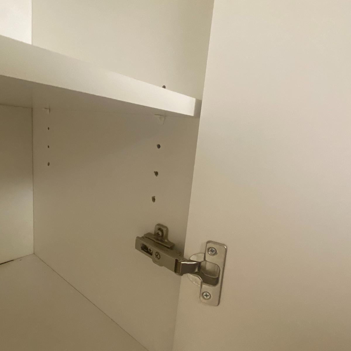 This lot is a large white pressed wood cabinet that is made up of two smaller cabinets stacked and attached to each other. First cabinet has doors that opens up to three open storage shelves, two of the shelves are adjustable. See photos. The second cabinet has doors that open up to a small drawer that pulls out and three shelves of storage Space, only one shelf on the bottom is adjustable. See photos. Entire unit measures 30”x15”x71”. Local pickup only.