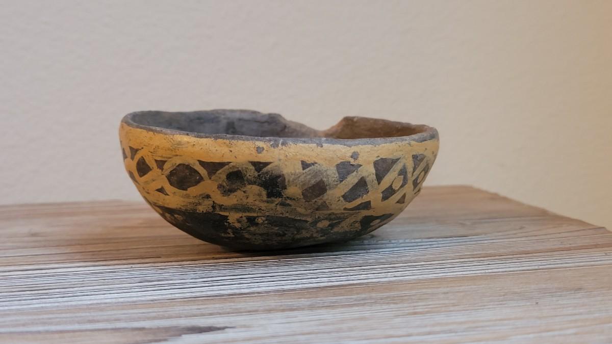 Small bowl with a chip. This piece was borrowed for an exhibition at CSU.