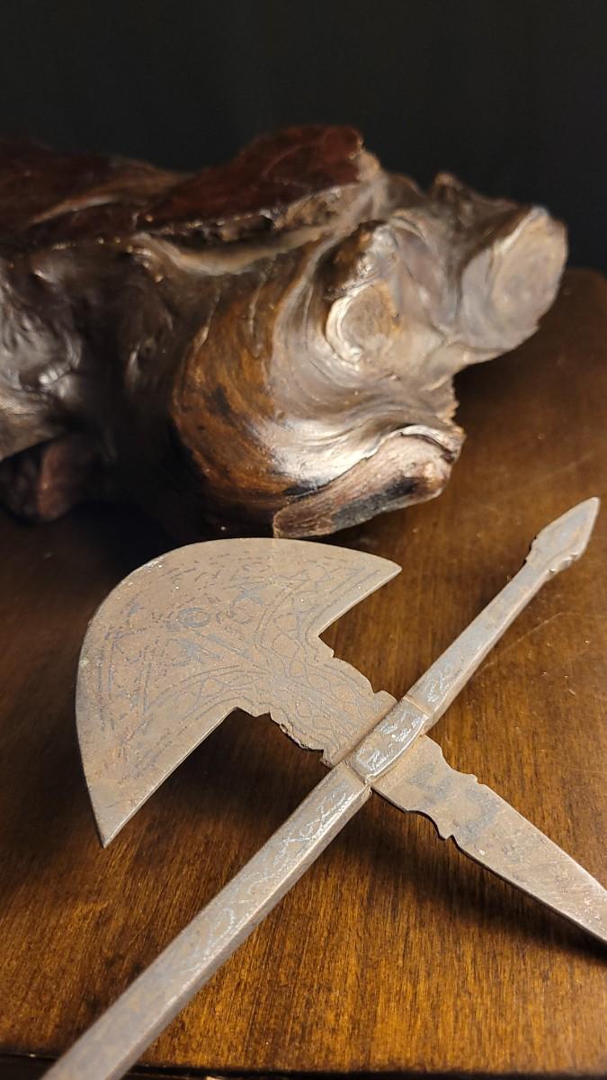 Lot 231: Middle Eastern All-Metal Axe with Chased Axe Head