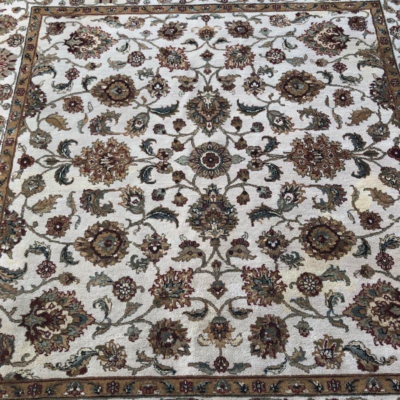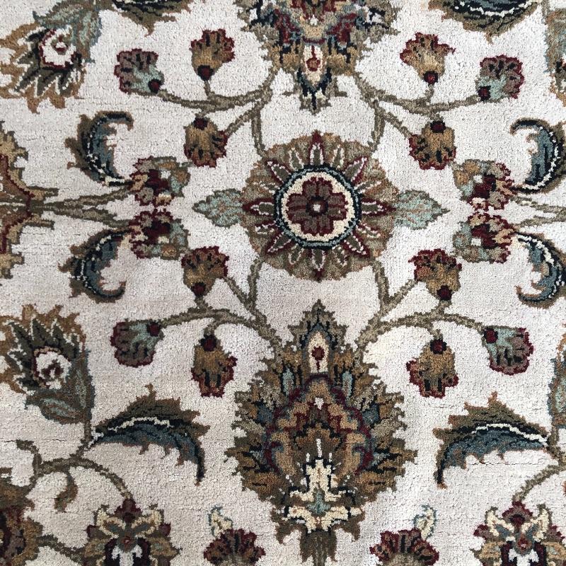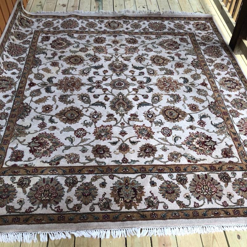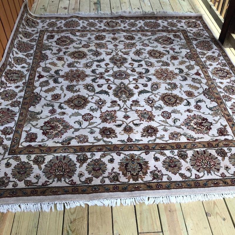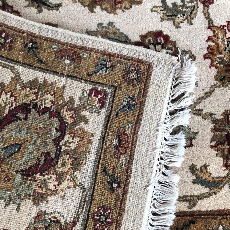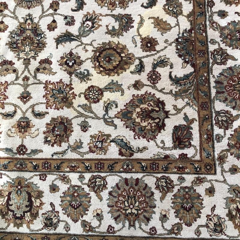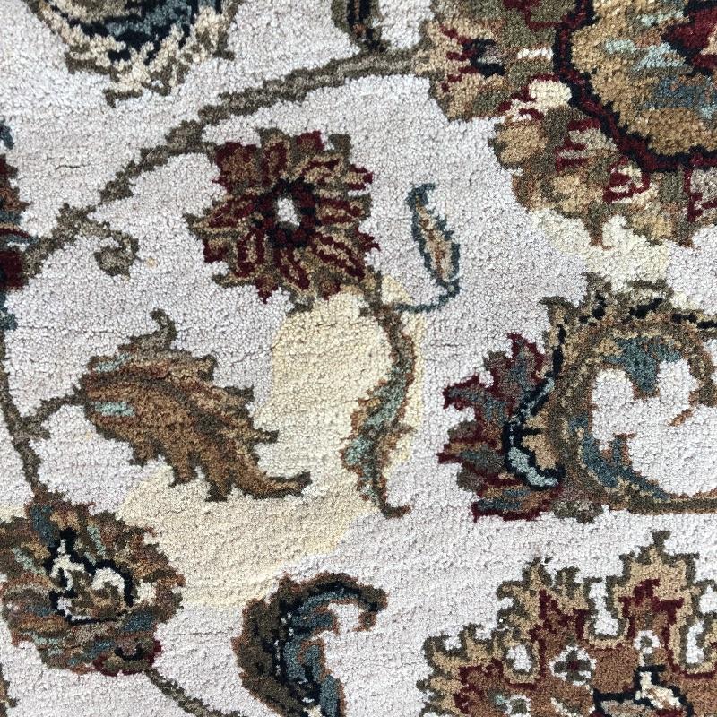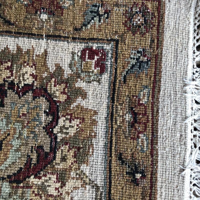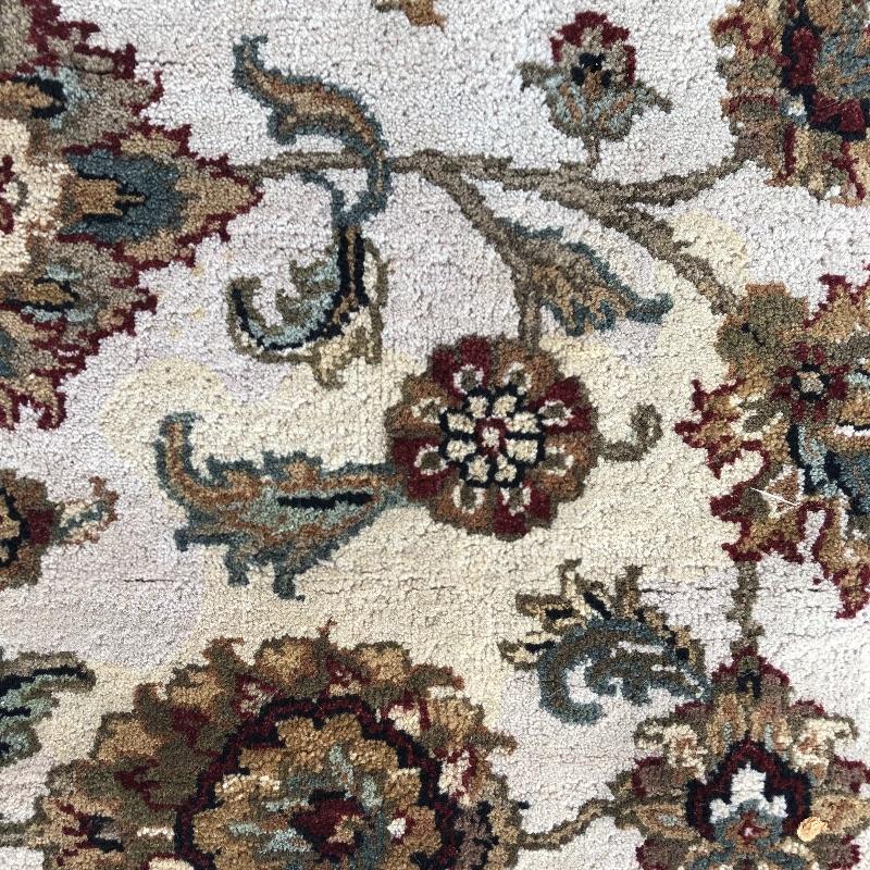 This are rug will be great to keep your feet warm and protect your floors. This muted color rug is in good shape, but has two light stains that are hard to see, see pictures.