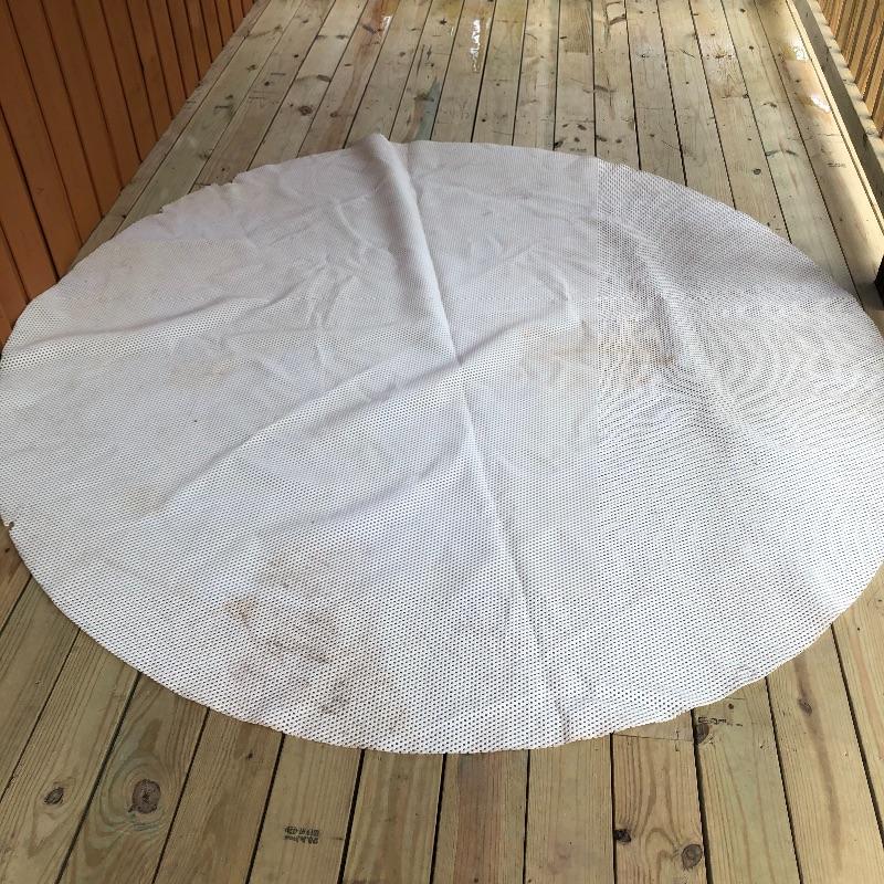 Rug measures 95” x 102”. Bring help item is substantial. Also includes non slip rug pad that measures 90”D.