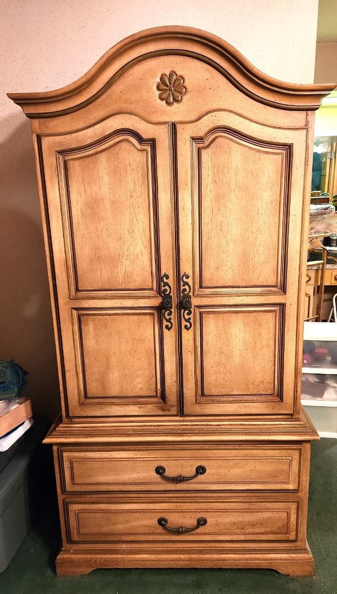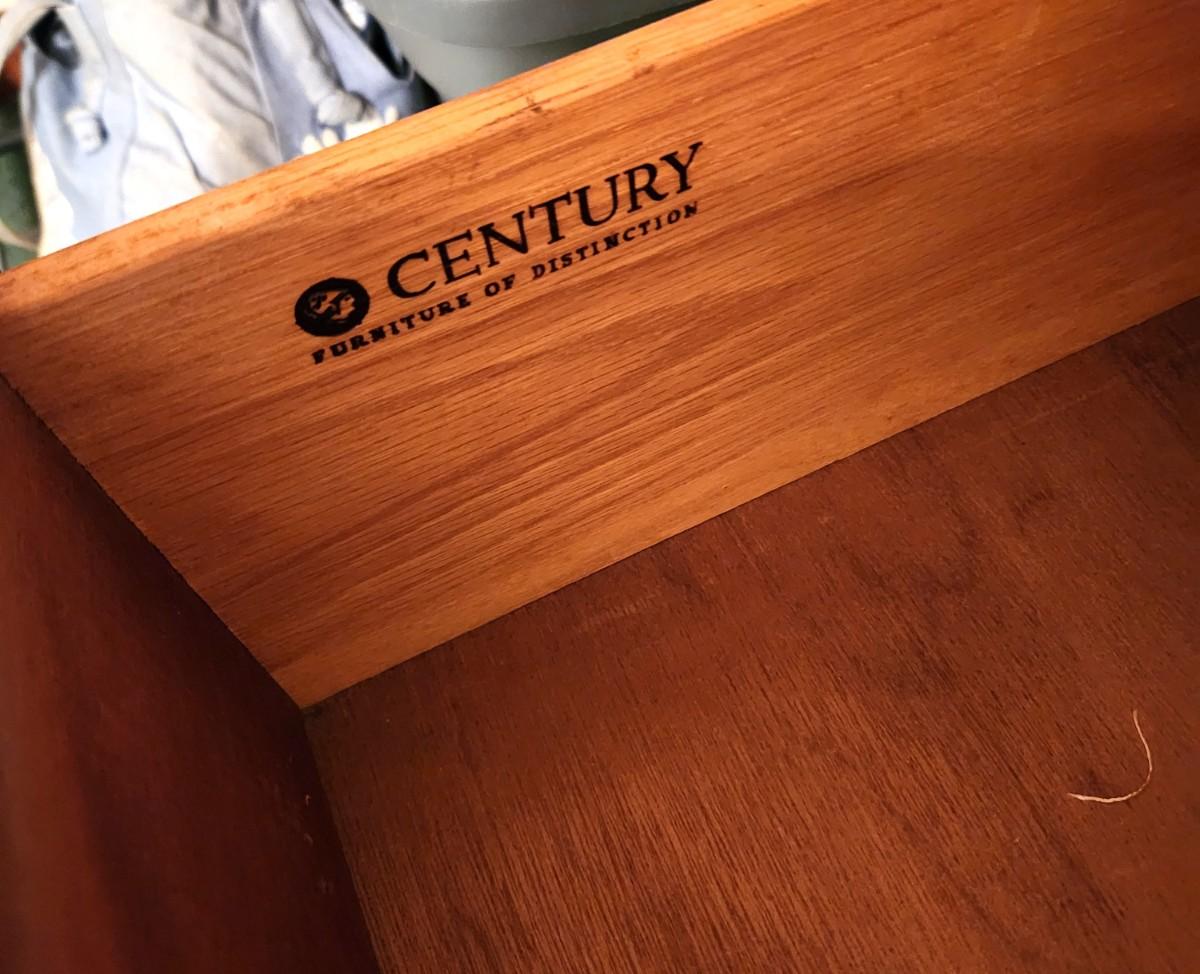 From the Century Furniture Company - Clothing armoire - 1 removeable shelf - 4 drawer chest. 38" wide, 6 feet tall. Vintage condition.