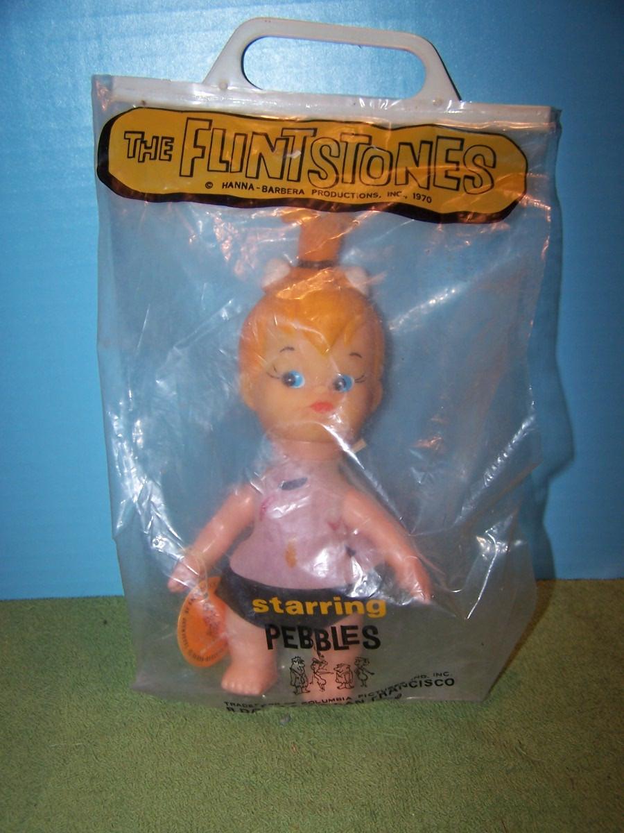 THIS IS A FANTASTIC COLLECTIBLE PEBBLES FLINTSTONES DOLL!!! SHE IS MARKED, AND IS IN EXCELLENT CONDITION... THE PLASTIC BAG IS SPLIT AND SCRATCHED/RUBBED...