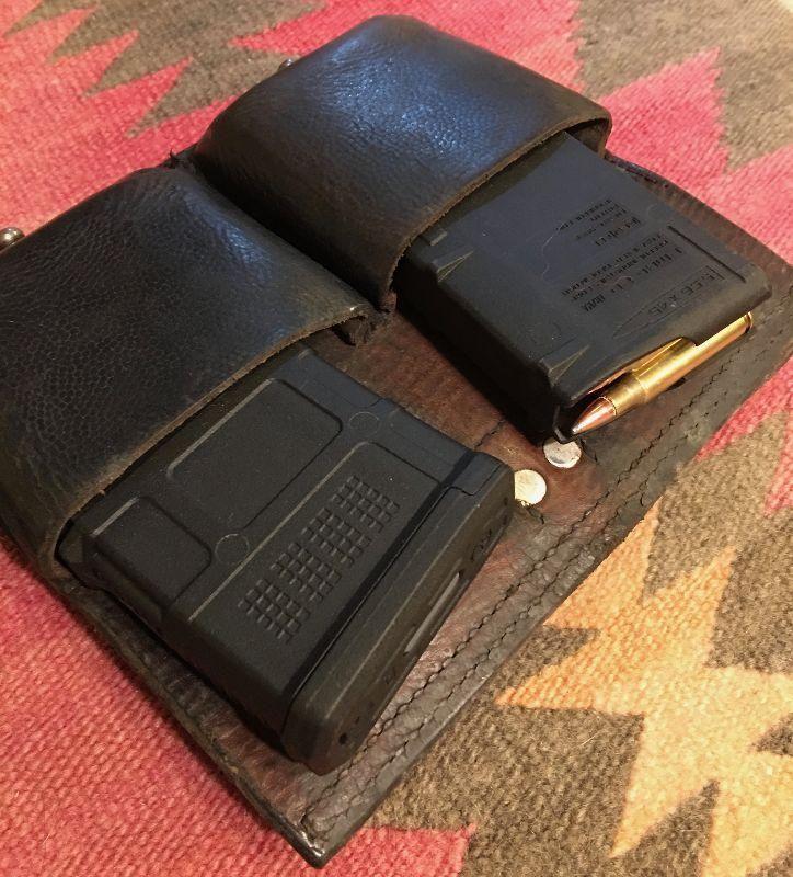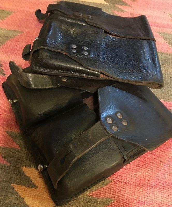 Vintage German/Austrian Stolla Leather magazine pouch. This will fit magazines for most FN/Fal .308 style battle rifles, quality gear to last a life time. Approximate size 6"x3"1" for each pouch.
