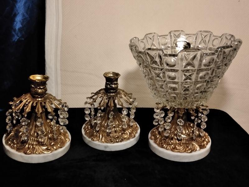 MONARCH CRYSTAL BOWL MADE IN GERMANY. TWO CANDLE HOLDERS