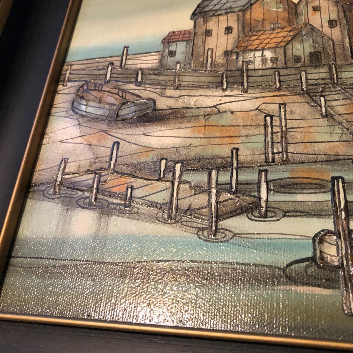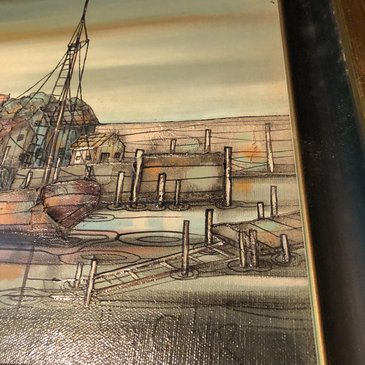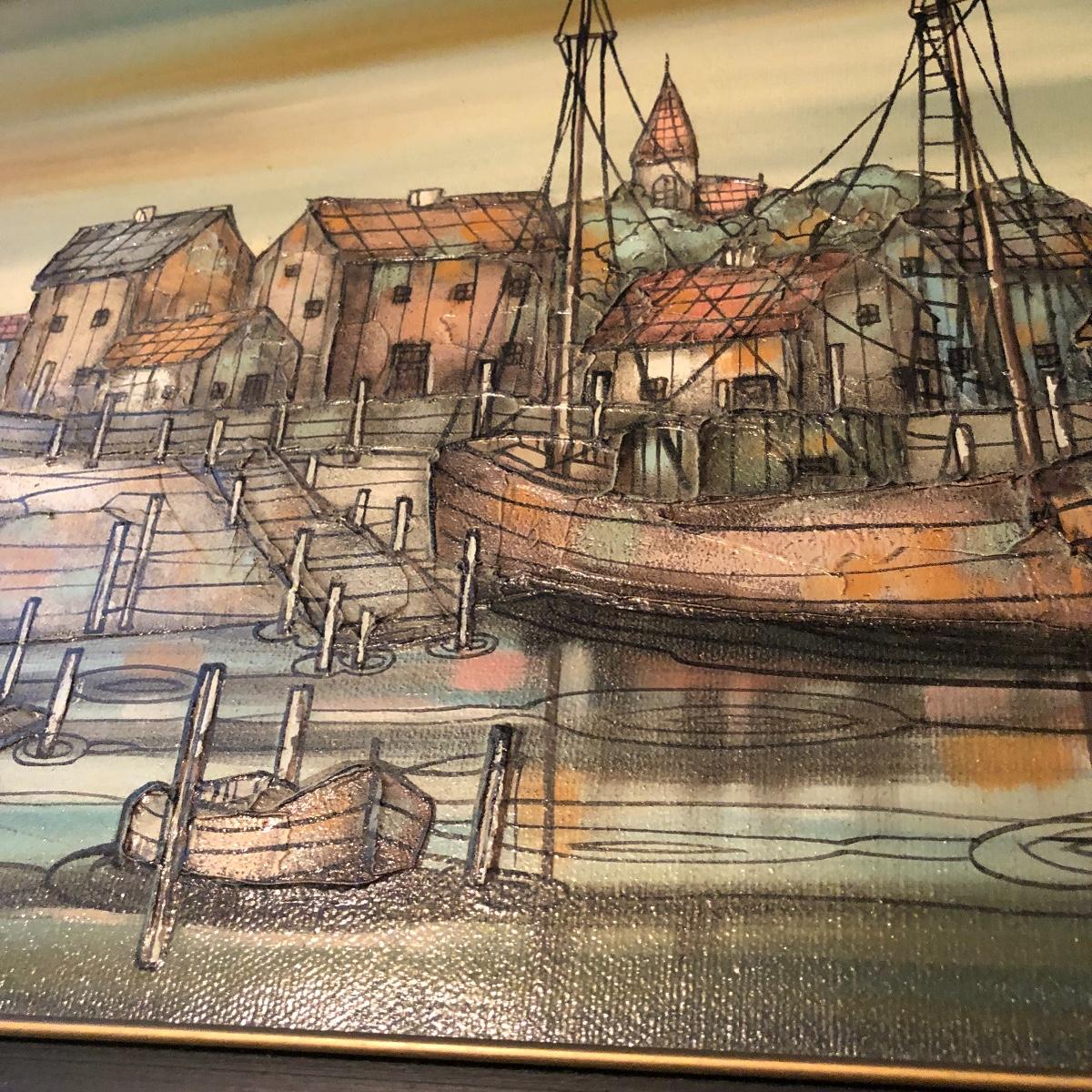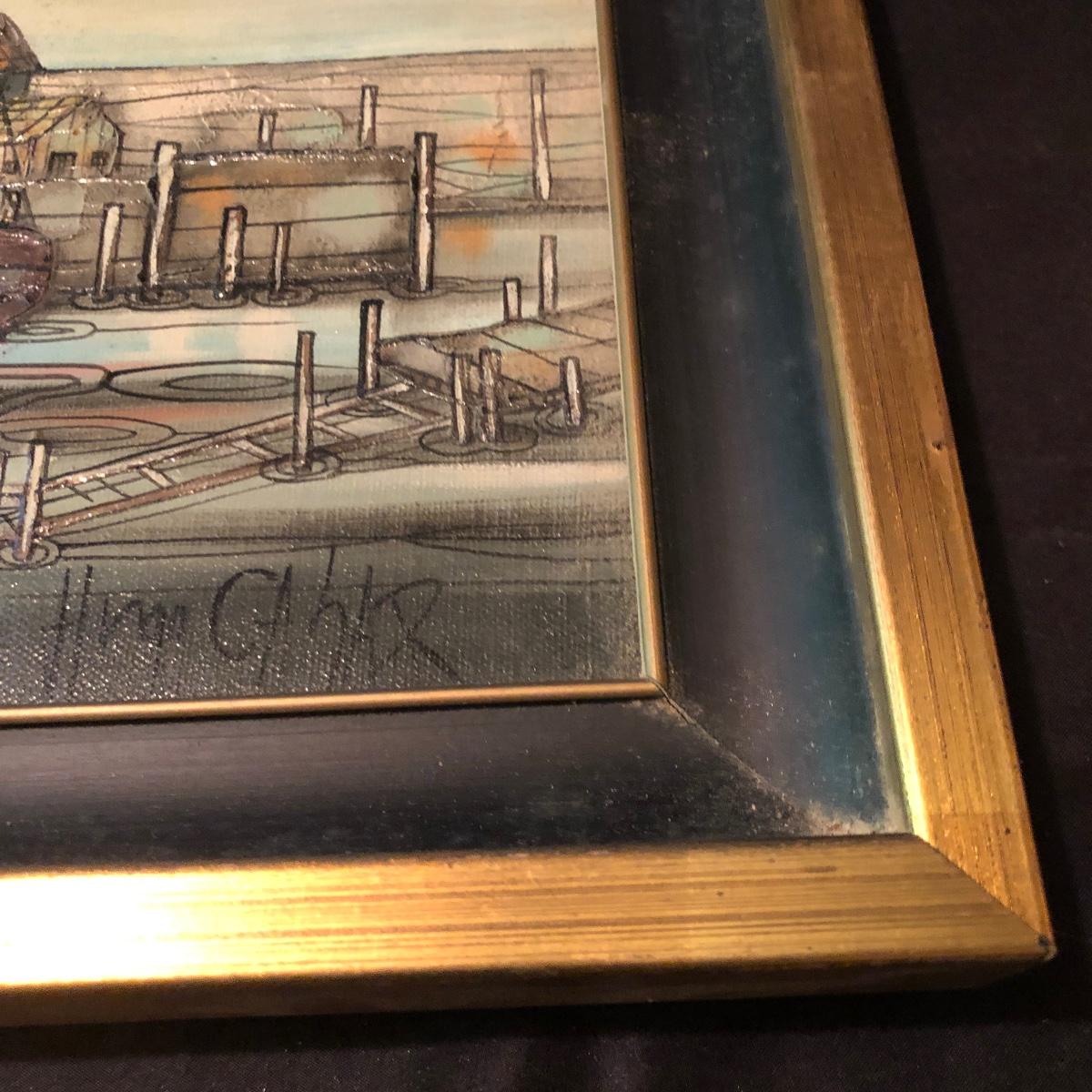 This stunning oil painting has the signed name - Hugo Cahar. Its a wonderful depiction of a harbor scene and measures 19” x 15”. Shipping Available; please call UPS for a quote as shipping art can be costly.