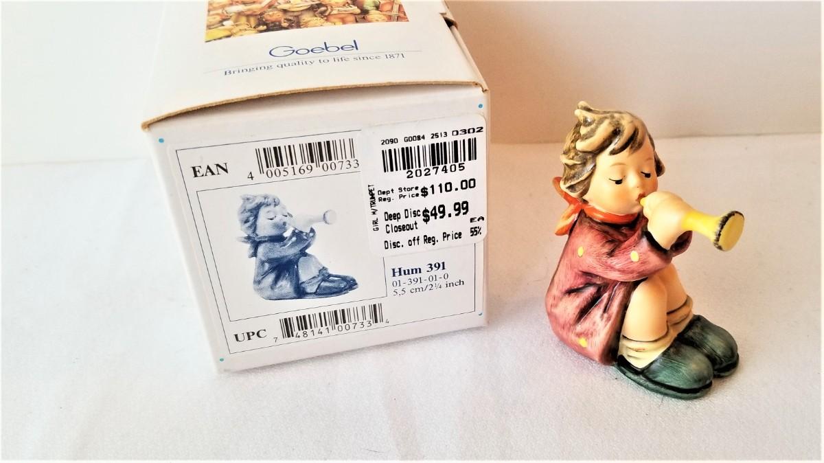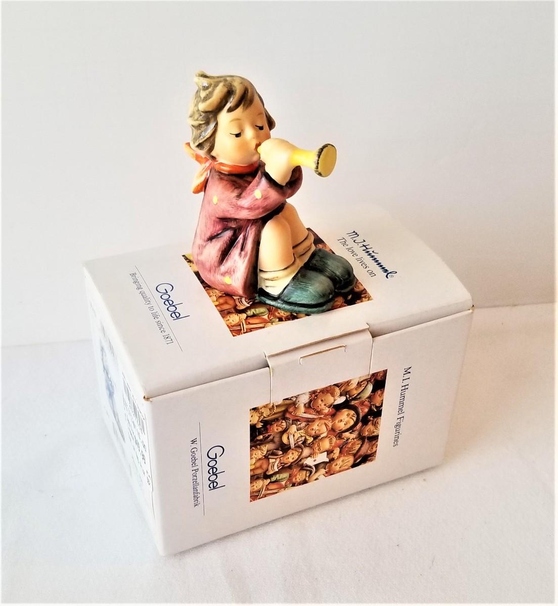 This cute little Hummel angel with horn is in good condition and comes with the box. 2.75" tall.