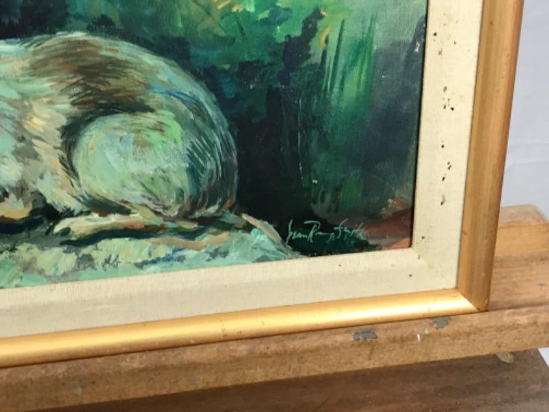 Jean Ranney Smith signed framed oil painting on board “Bunny” measures 16-1/2”x13”