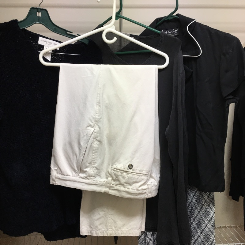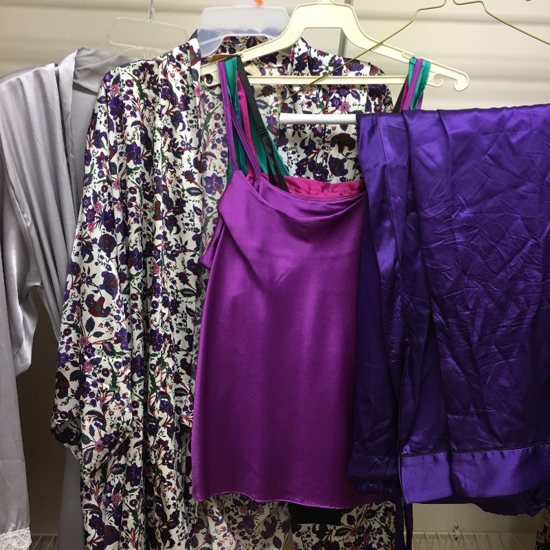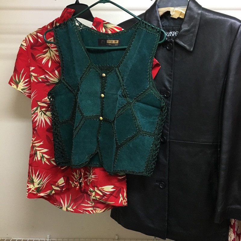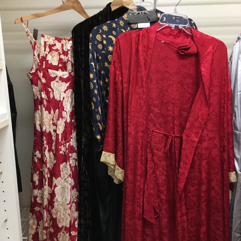 Large selection of Ladies Clothing and accessories including belts, shoes, hats, purses, robes, gloves, leather jacket and more. Most clothes that are marked are small and medium and shoes are size 8.5 - 9.