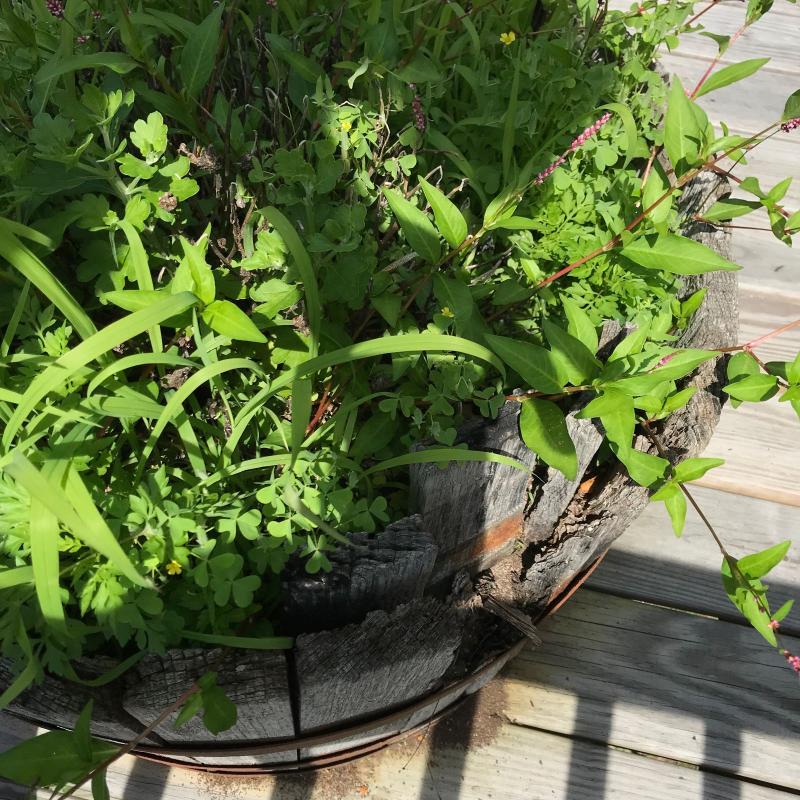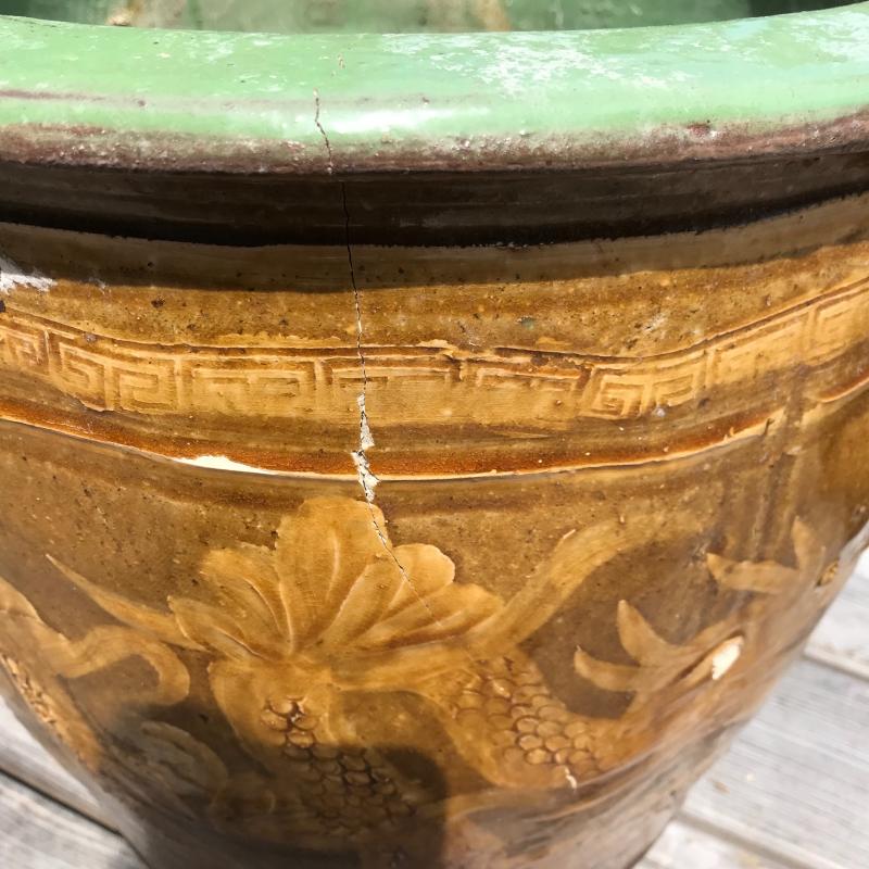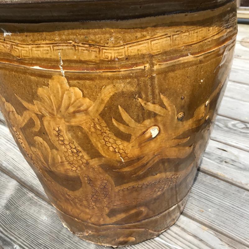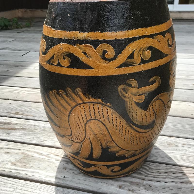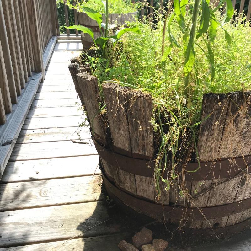 Lot includes two barrel planters that have been outside so are a bit worn. Also includes Two ceramic pots (Largest is 17”d x 18”h) and a ceramic stool or plant stand that is 14”d by 19”h No shipping. Local pick up only.