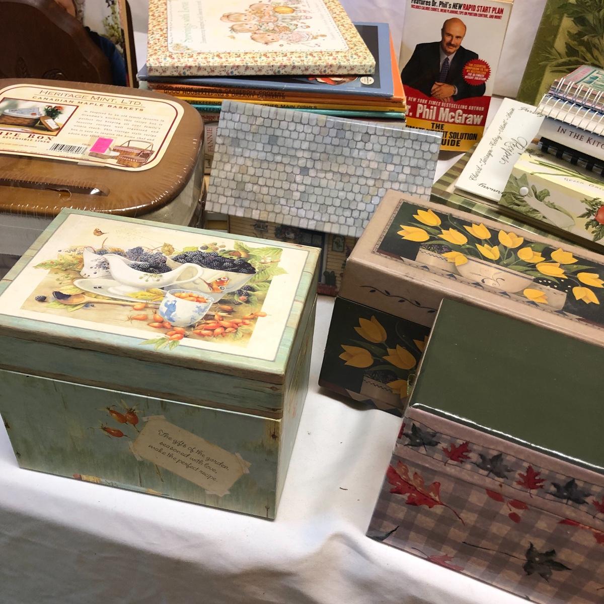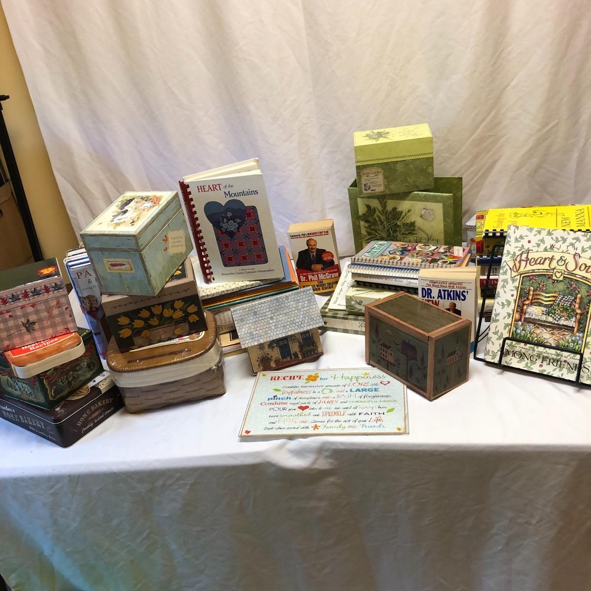 This lot contains a superb range of cookbooks and more than enough recipe boxes that you will be able to gift some to friends and family. Also included is a very handy recipe book holder/stand, glass chopping board and more.