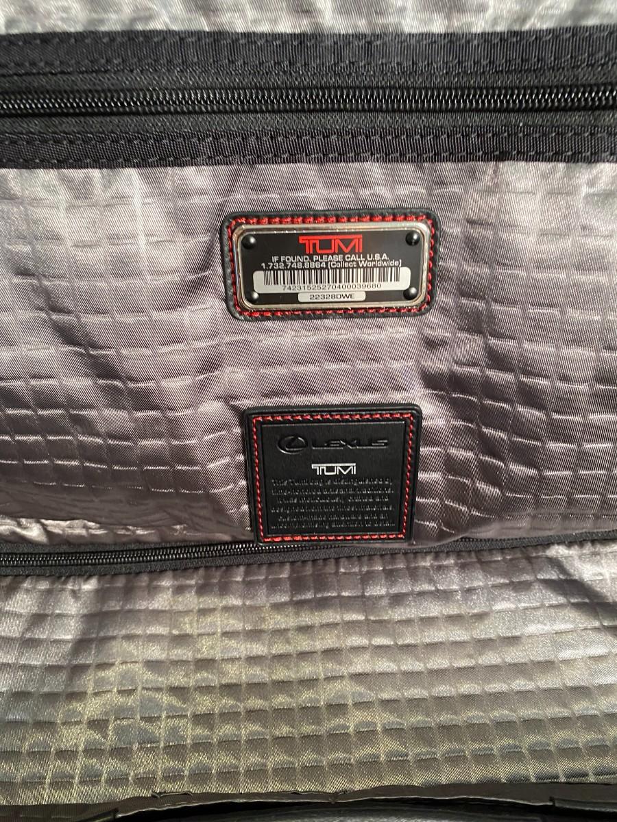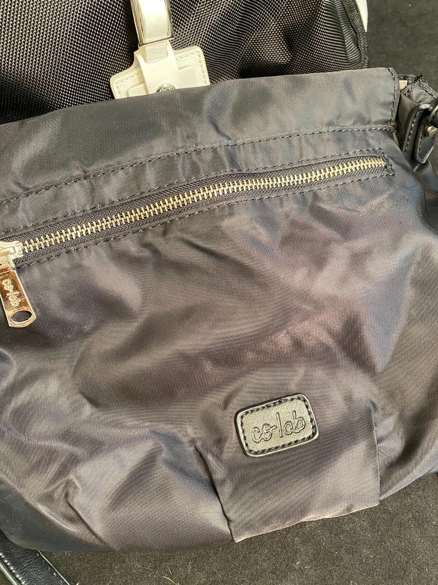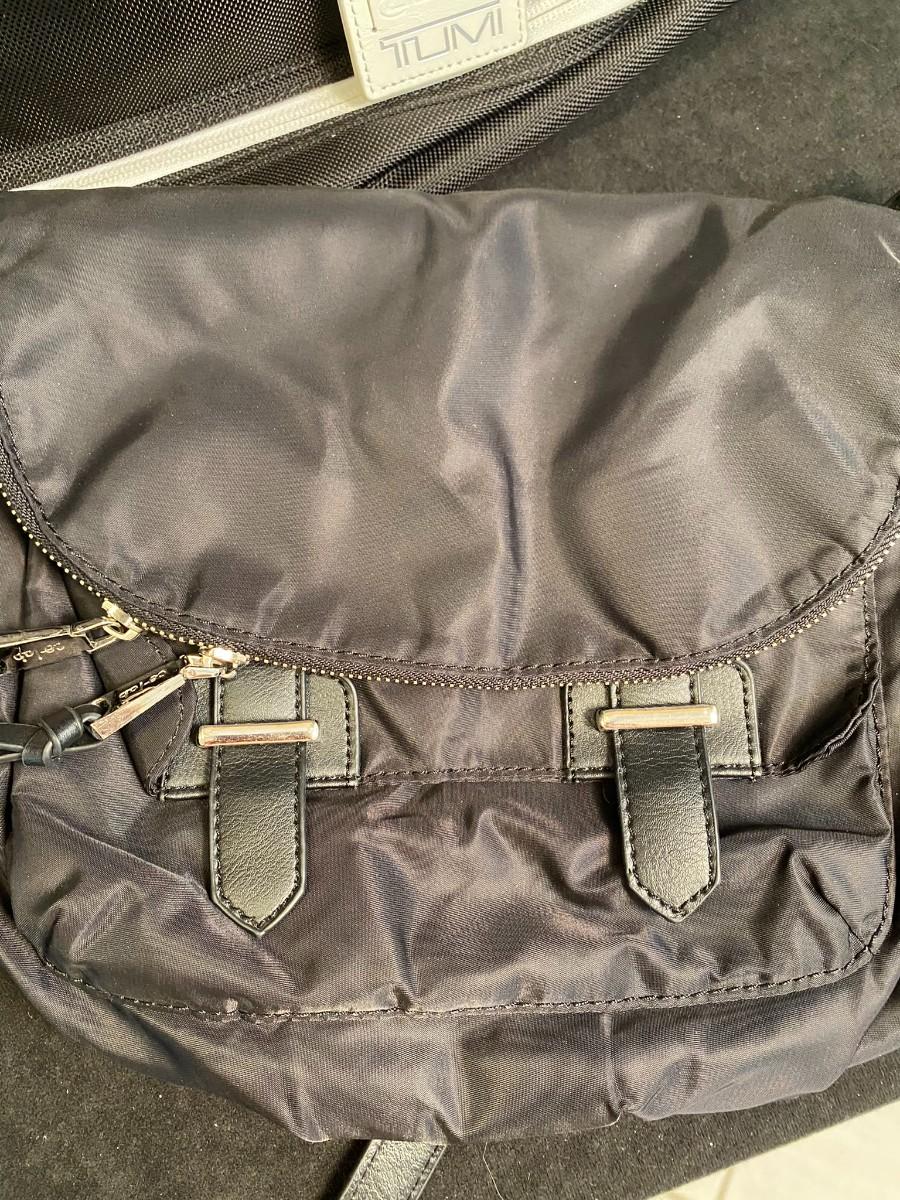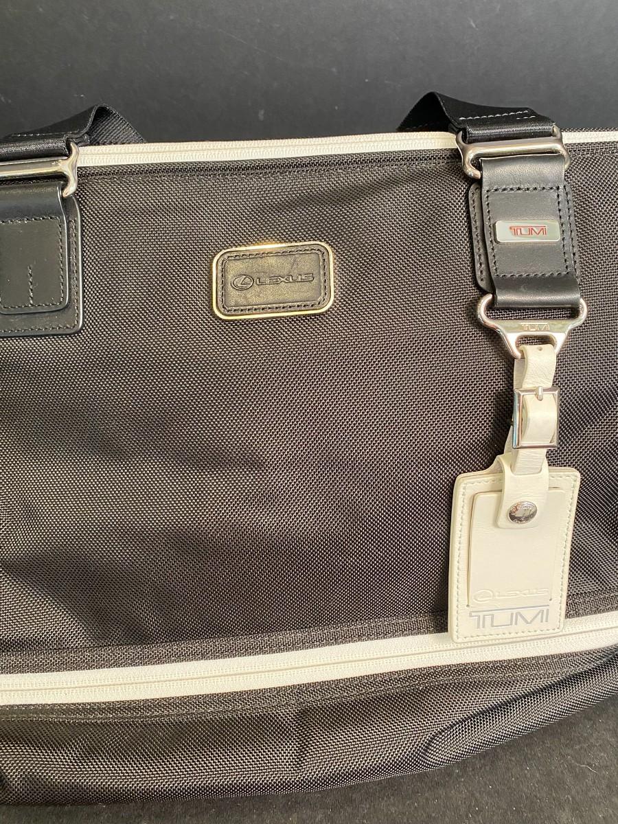 Tumi "Lexus" travel tote, co-lab travel purse, and pearl evening bag.