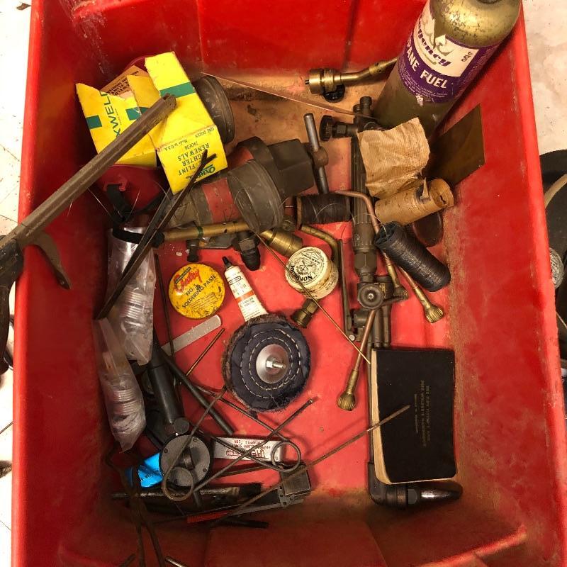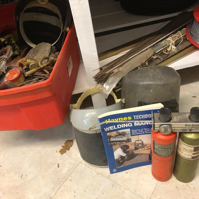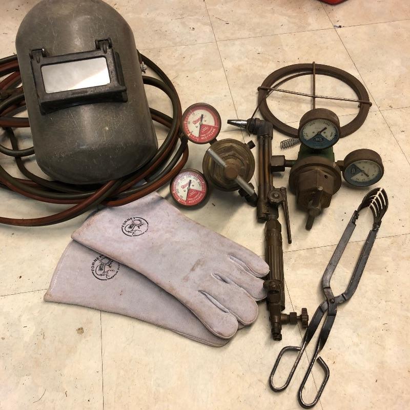 Lots of welding necessities and accessories in this large lot. There are images of everything but to name some of the many items - two gas regulators, welding blowpipe, wire, 3 masks and much more.