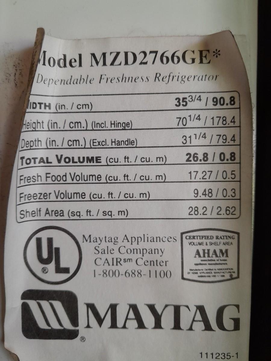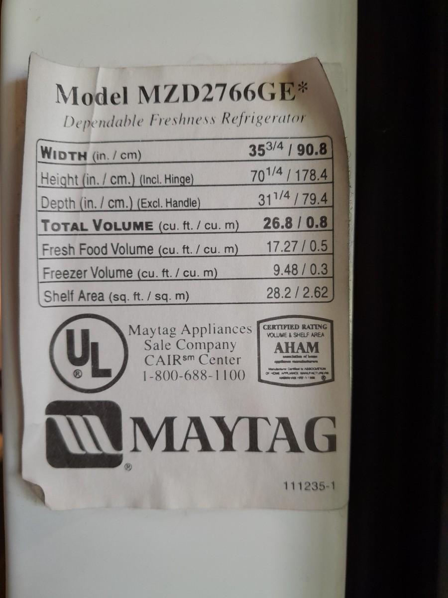 WORKING MAYTAG PLUS DEPENDABLE FRESHNESS REFRIGERATOR MODEL