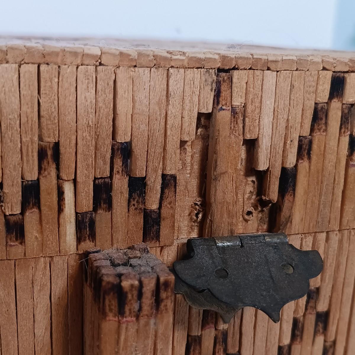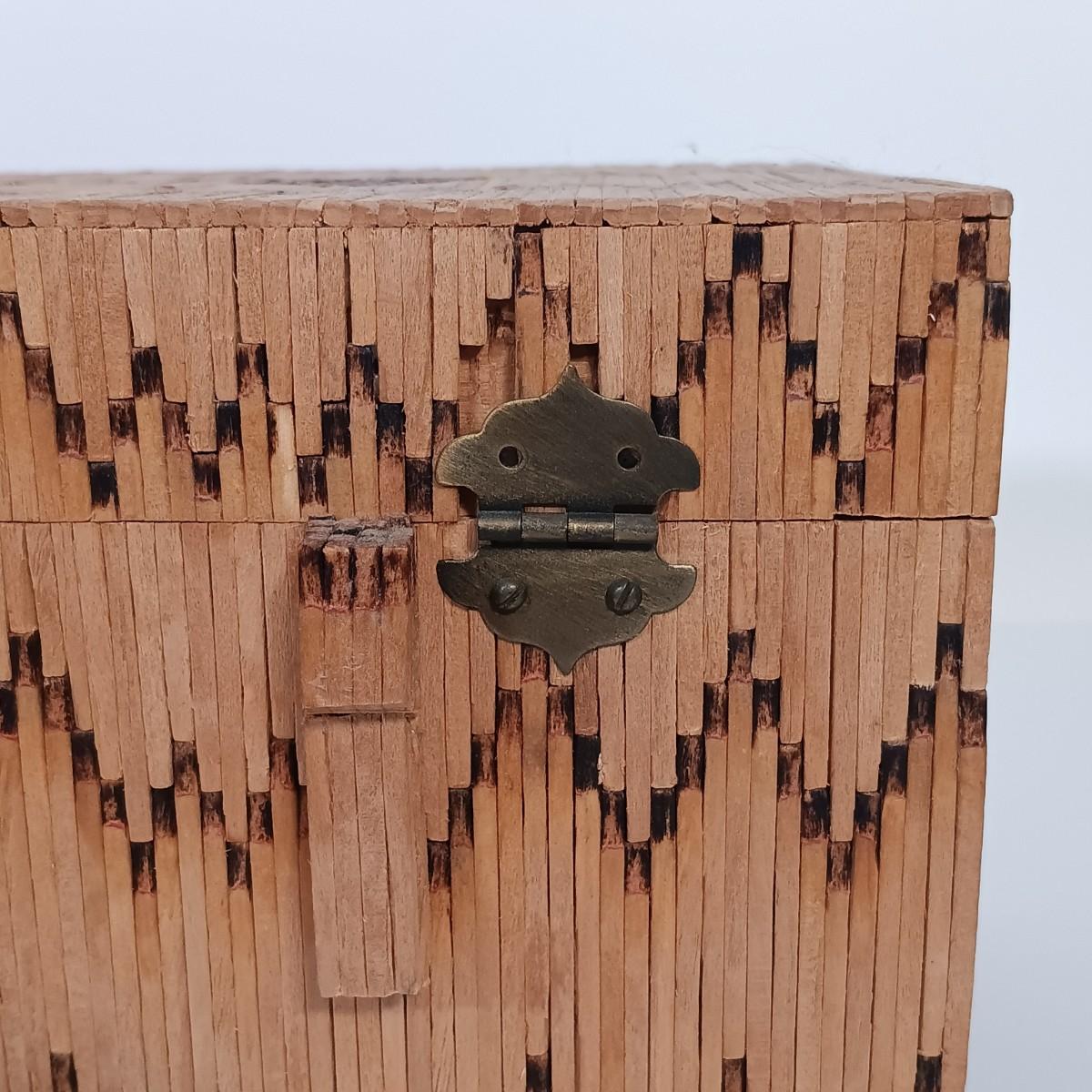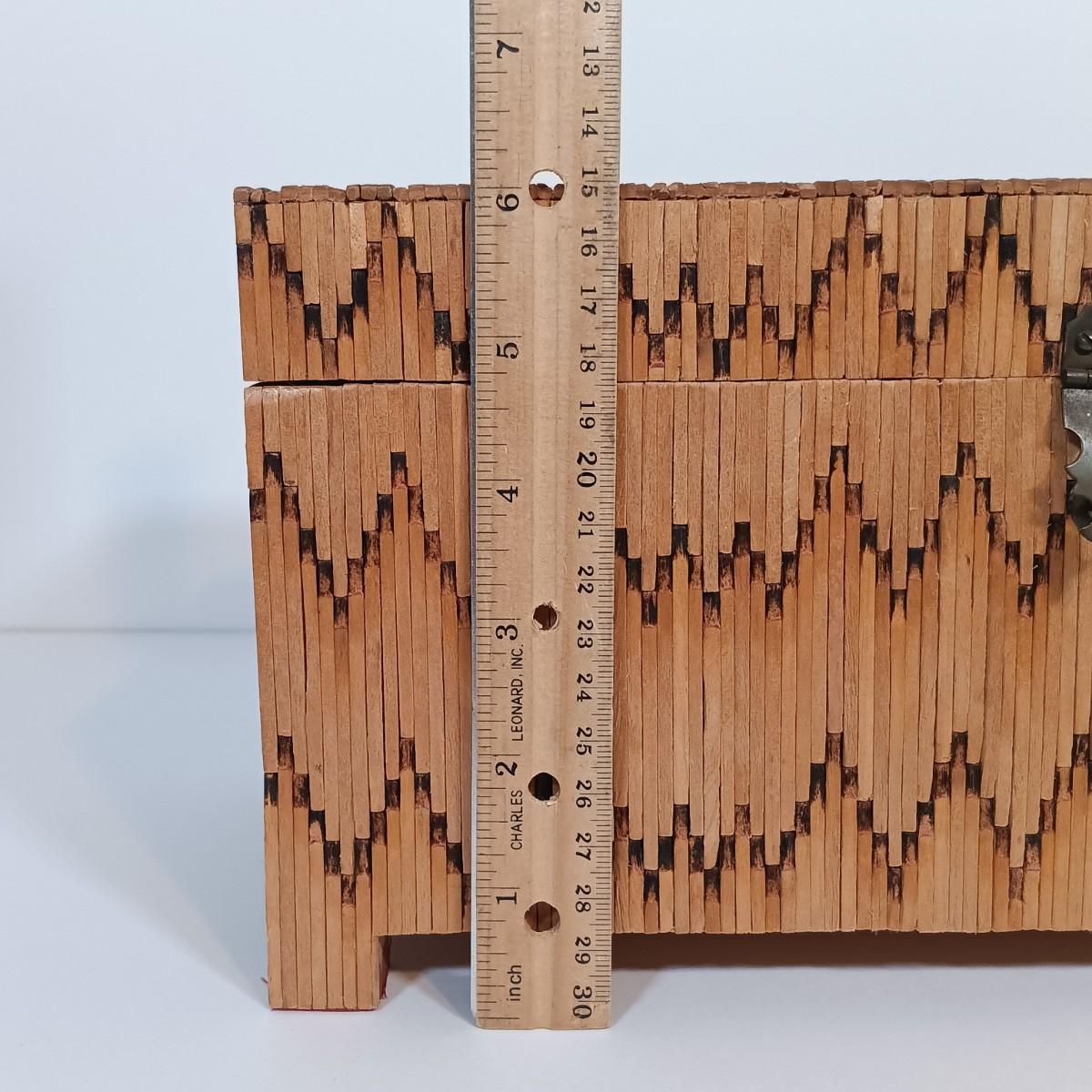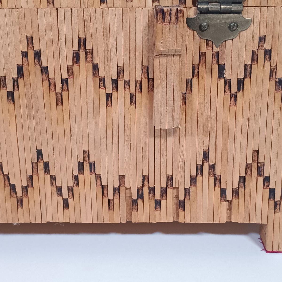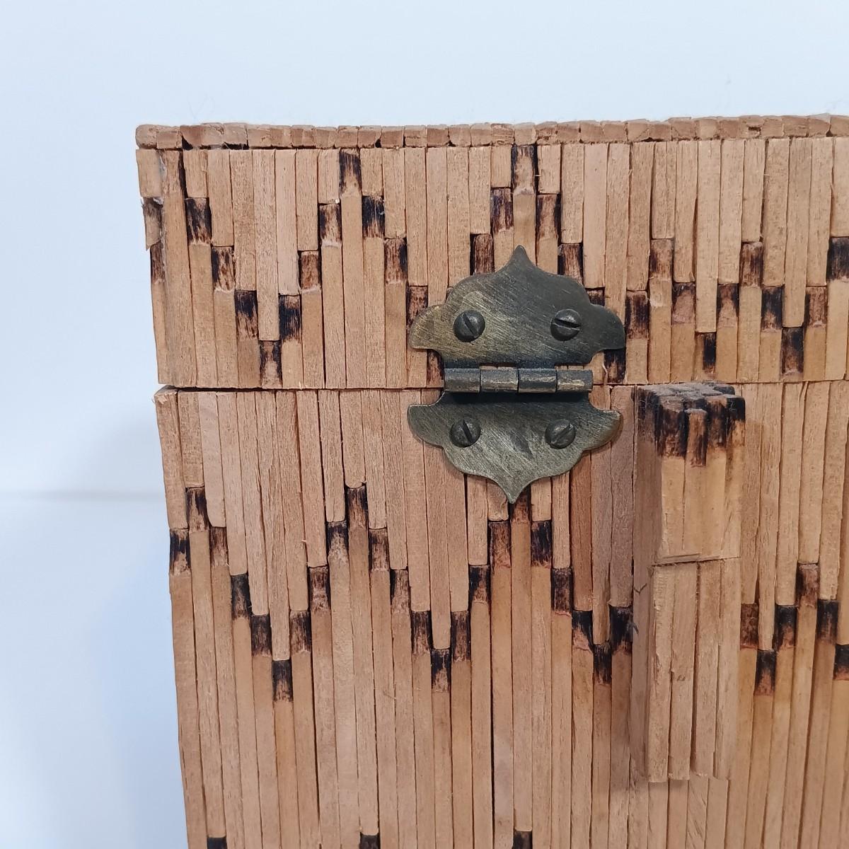 LOT 232: Vintage Signed Match Stick Folk / Tramp Art Jewelry Box
