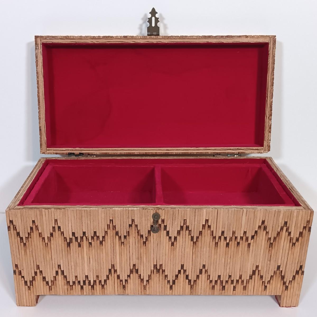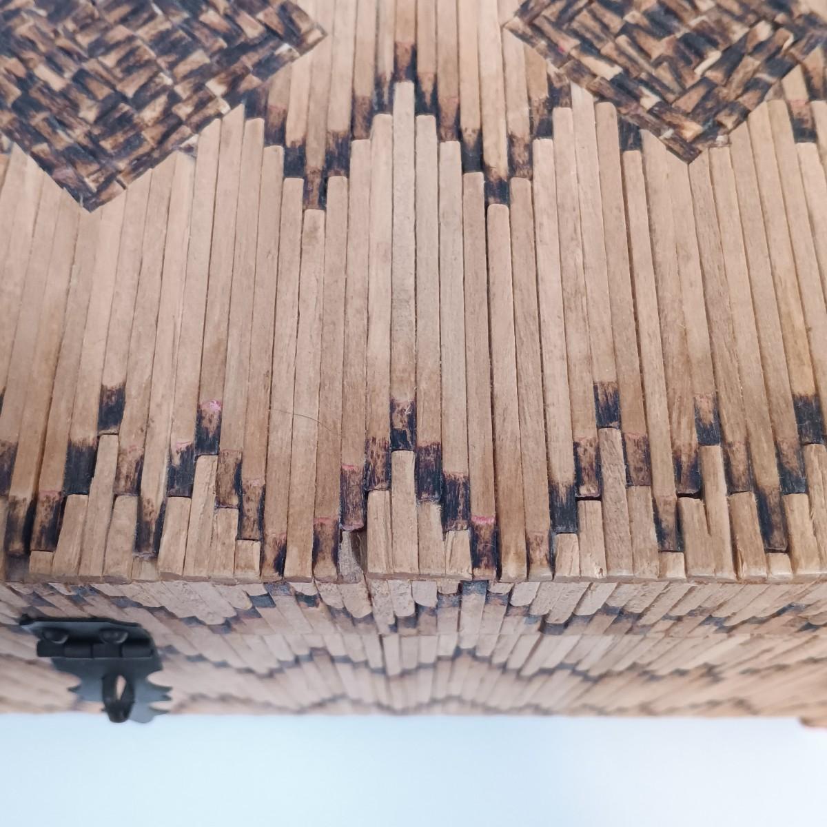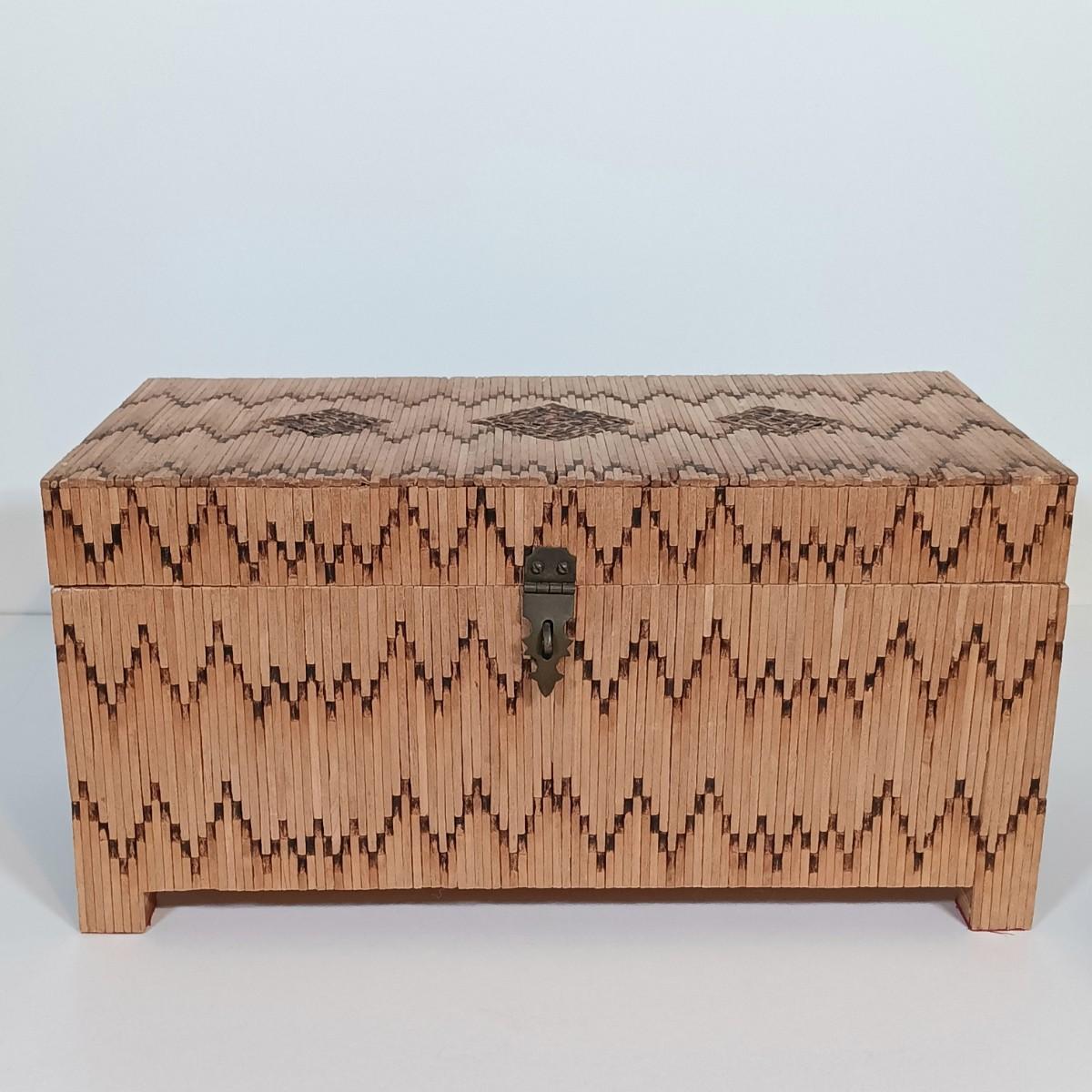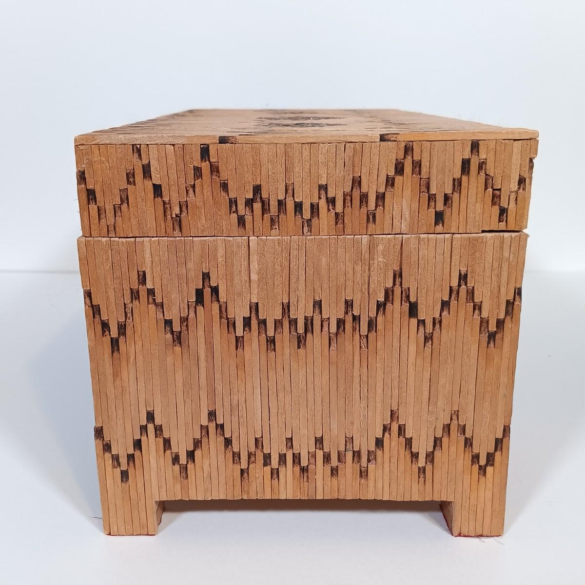 LOT 232: Vintage Signed Match Stick Folk / Tramp Art Jewelry Box