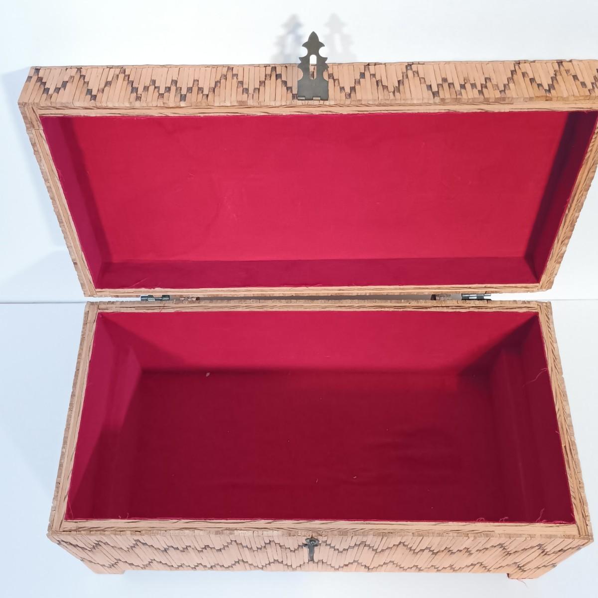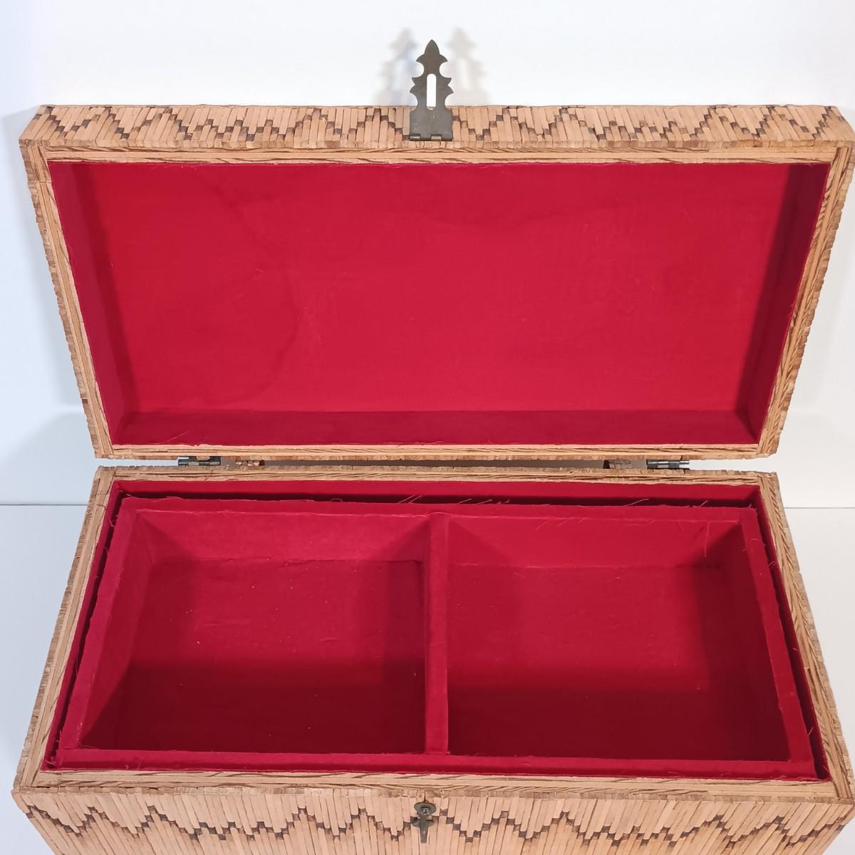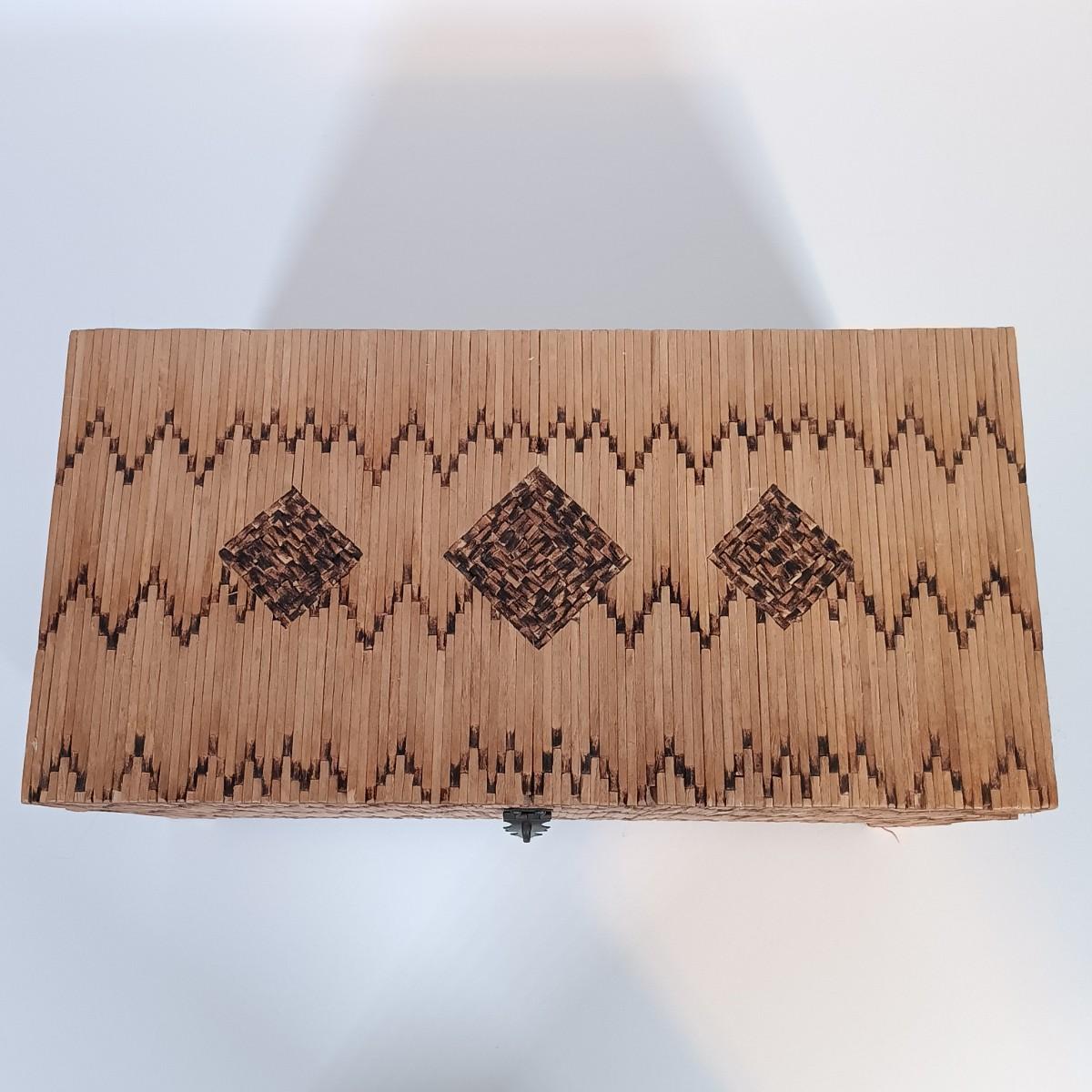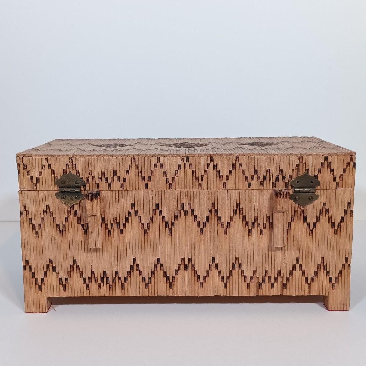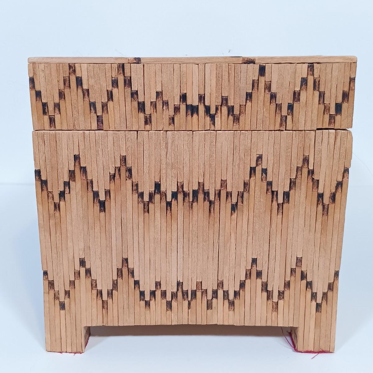LOT 232: Vintage Signed Match Stick Folk / Tramp Art Jewelry Box