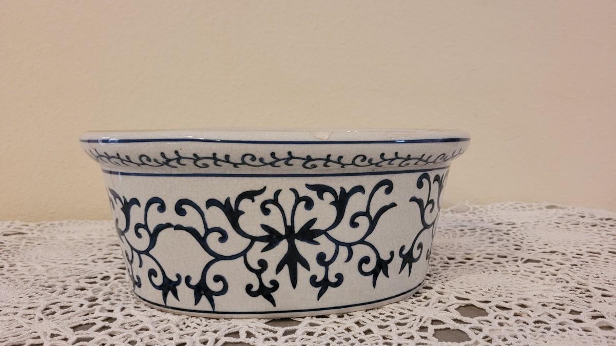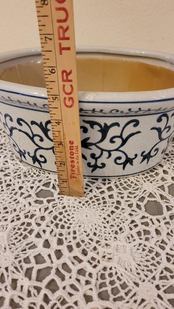 Lot 202: Blue & White Planter with Plastic Insert