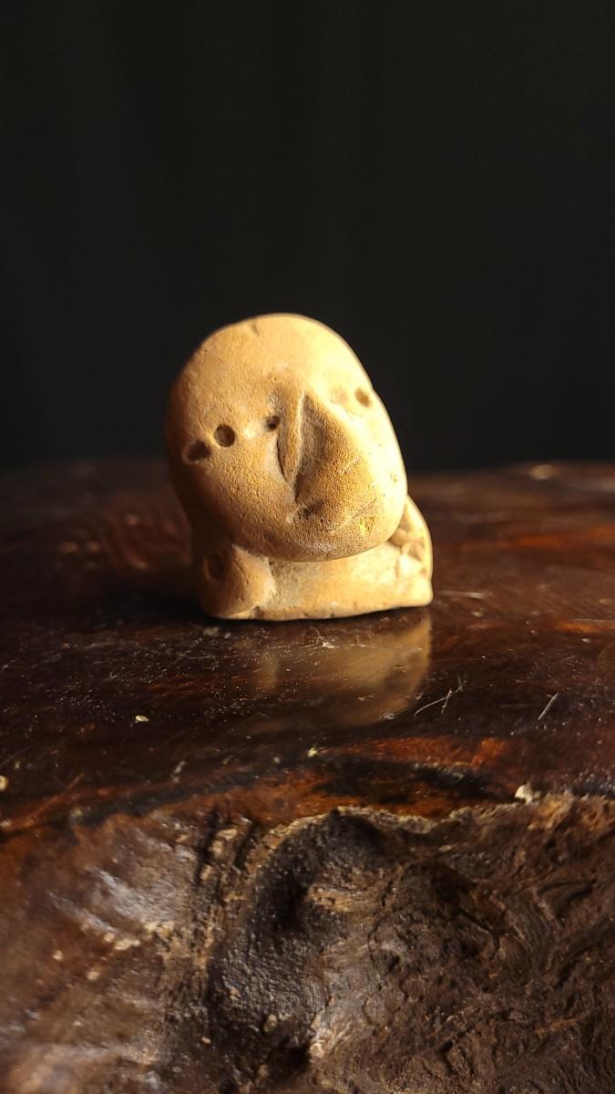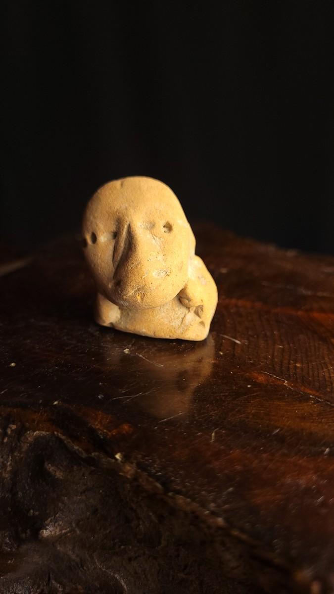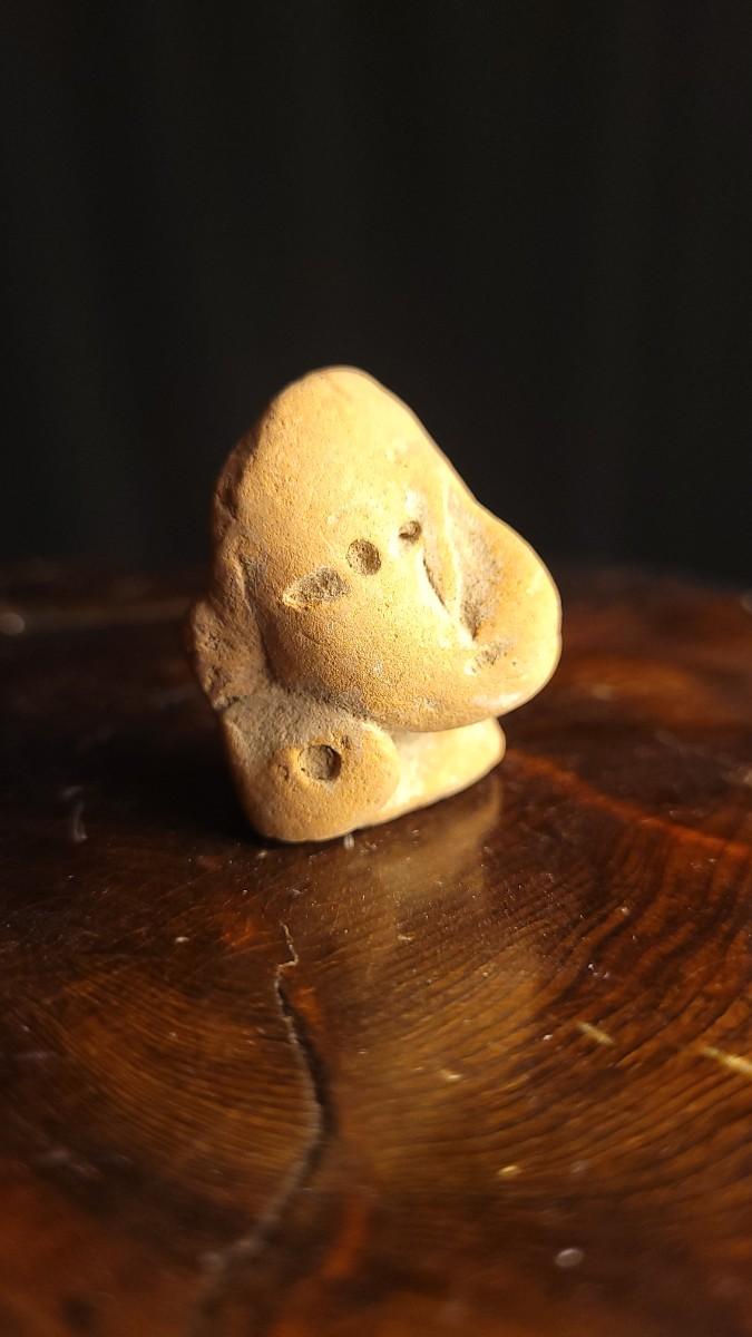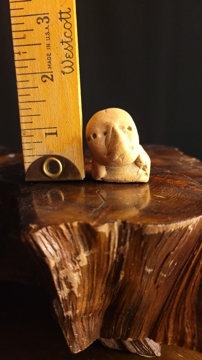 1.25" x 1.25" x 1". Looks very reminiscent of Kachina Mask.