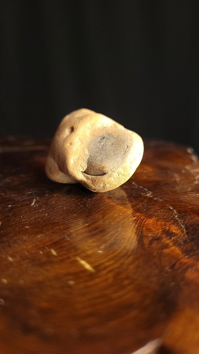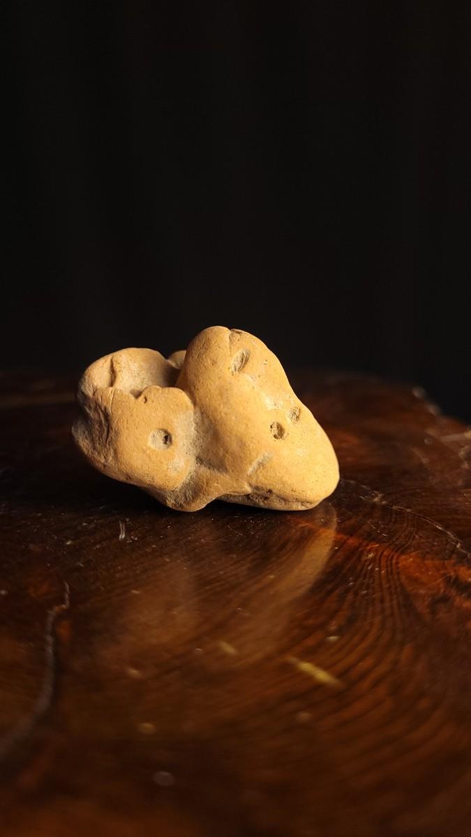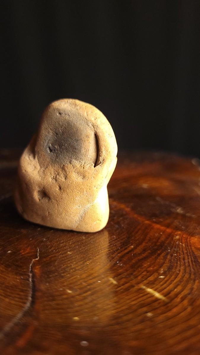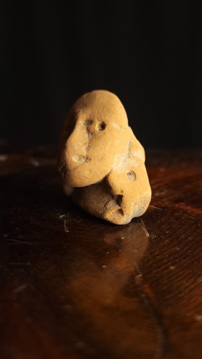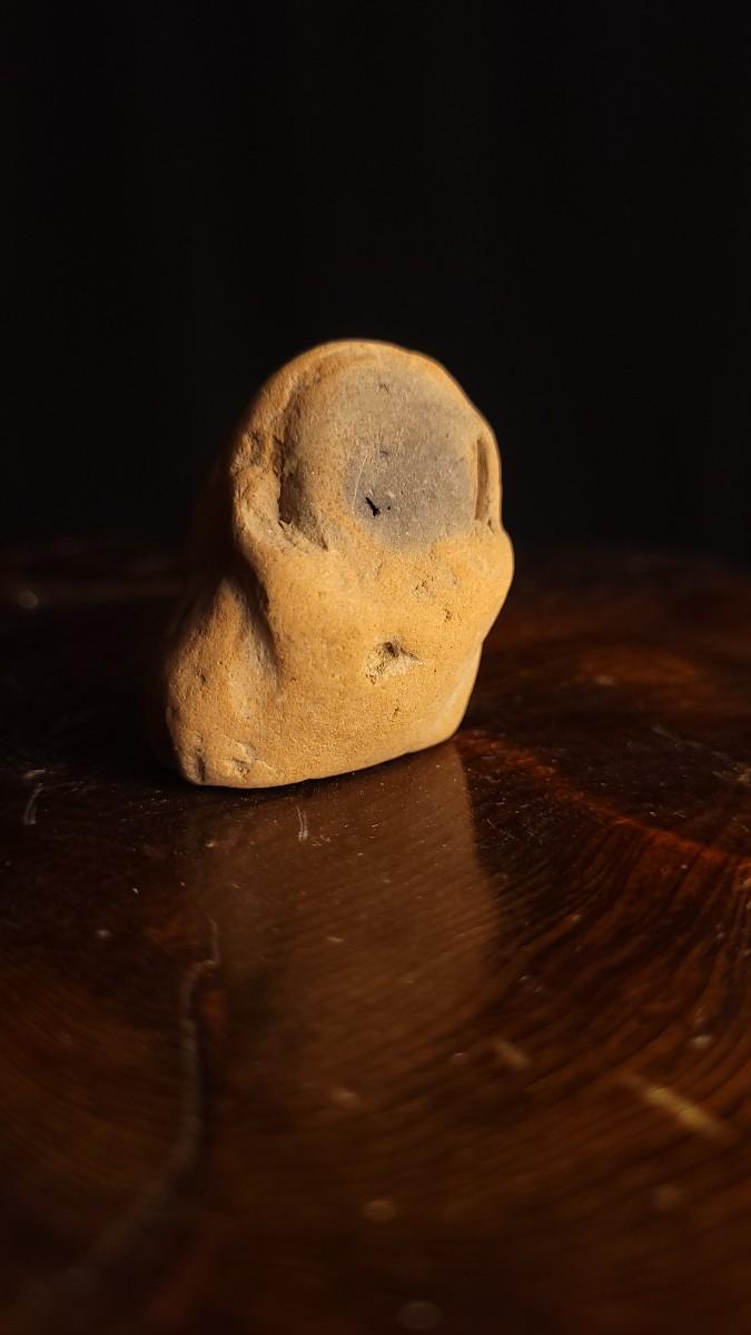 1.25" x 1.25" x 1". Looks very reminiscent of Kachina Mask.