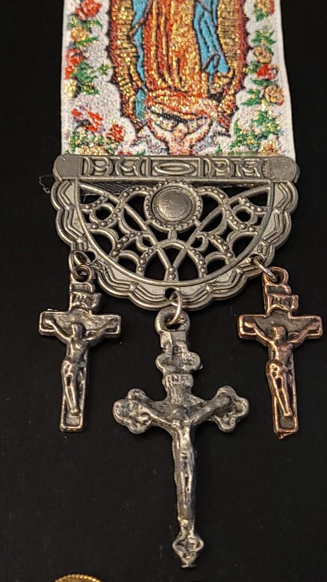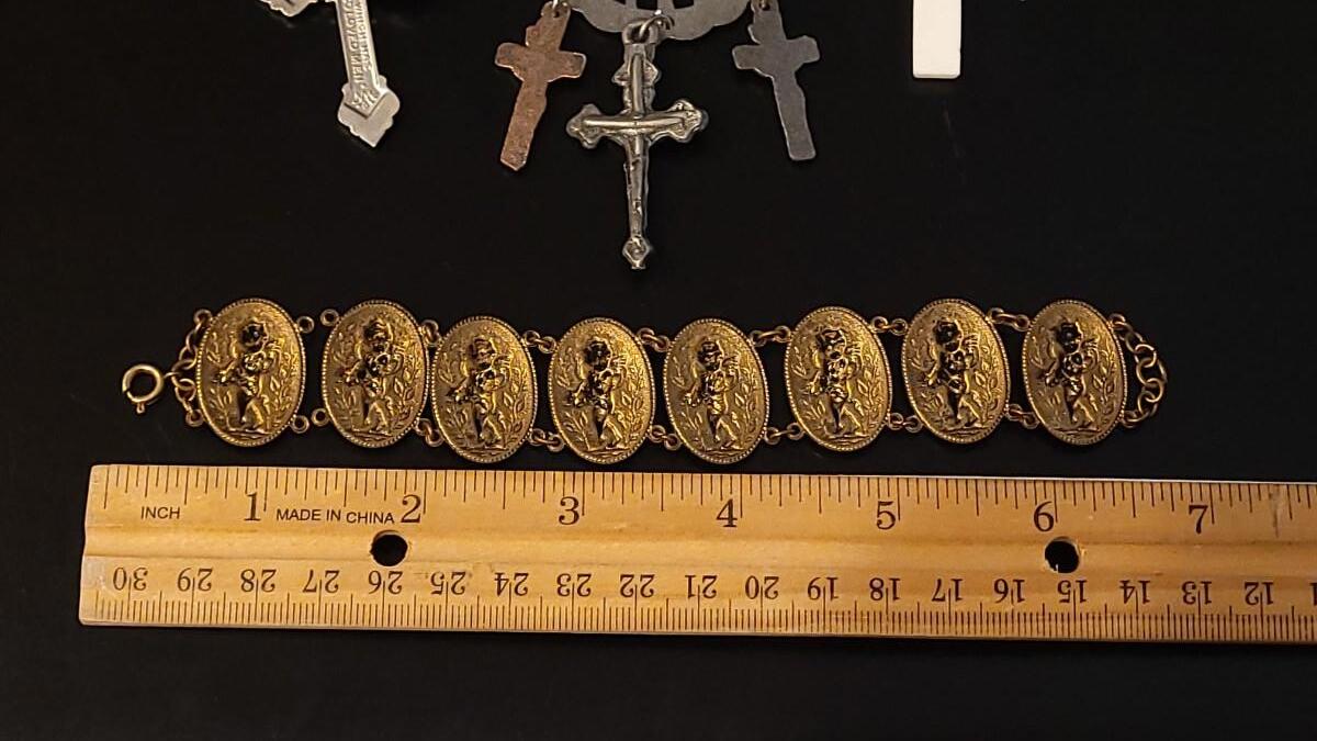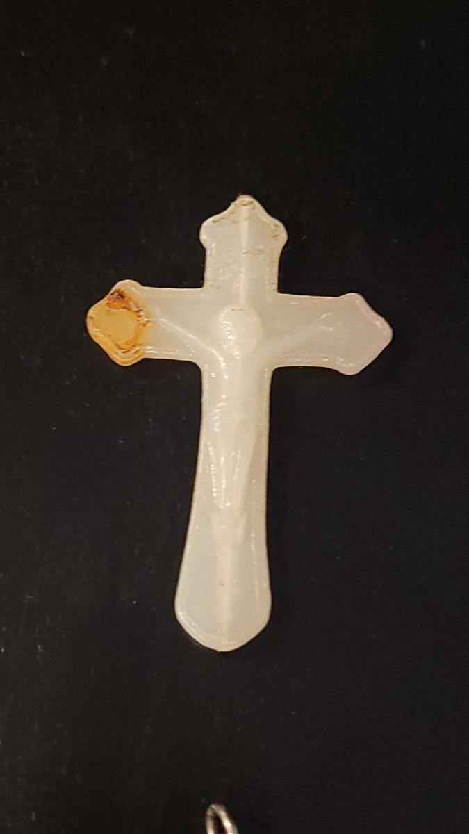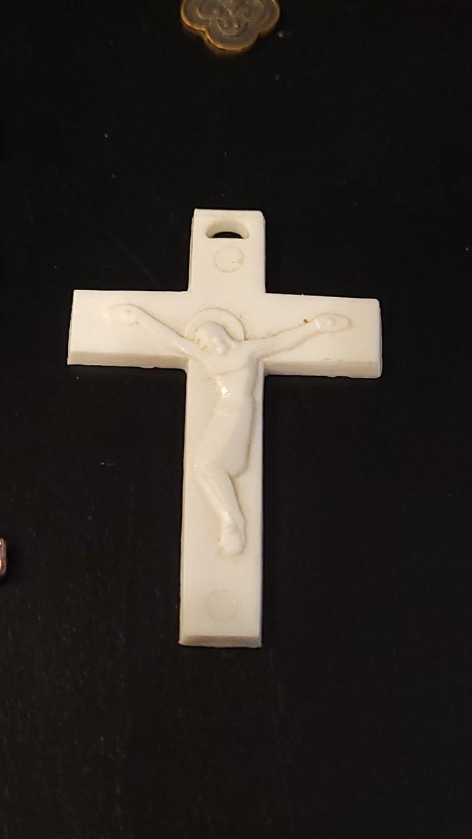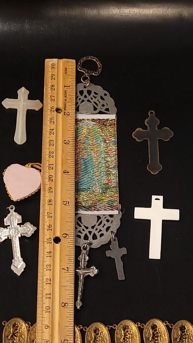 Pendants, Hanging Deco, 2 Plastic Crosses, Religious Bracelet that needs repair