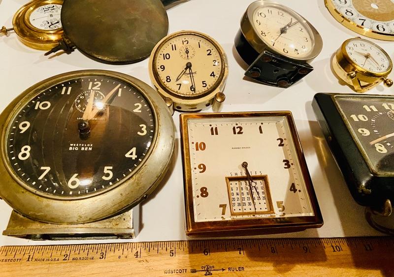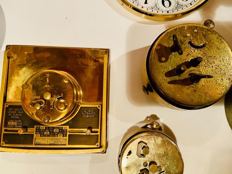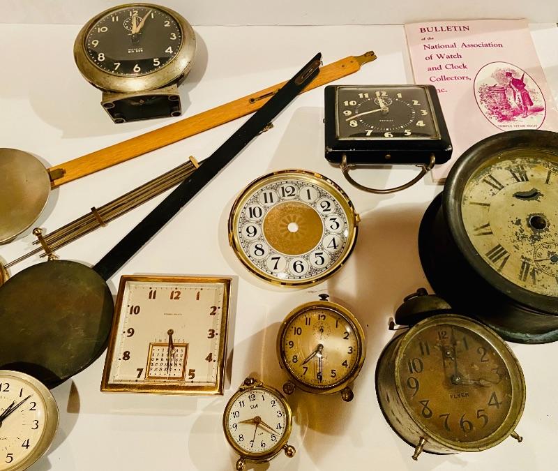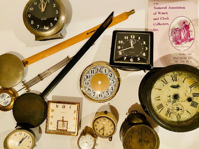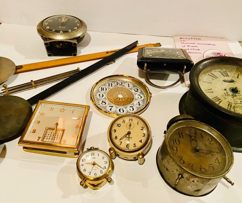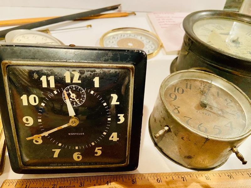 This is unique lot of clocks and clock parts. Included is a ships clock as-is and more. Assorted size clocks and clock pieces, Please see all pictures for content of the lot, condition of the lot, and measurements if taken. Pictures are the best representation of the items listed and items are untested unless indicated in description. Thank you for looking and have fun bidding!MHW.
